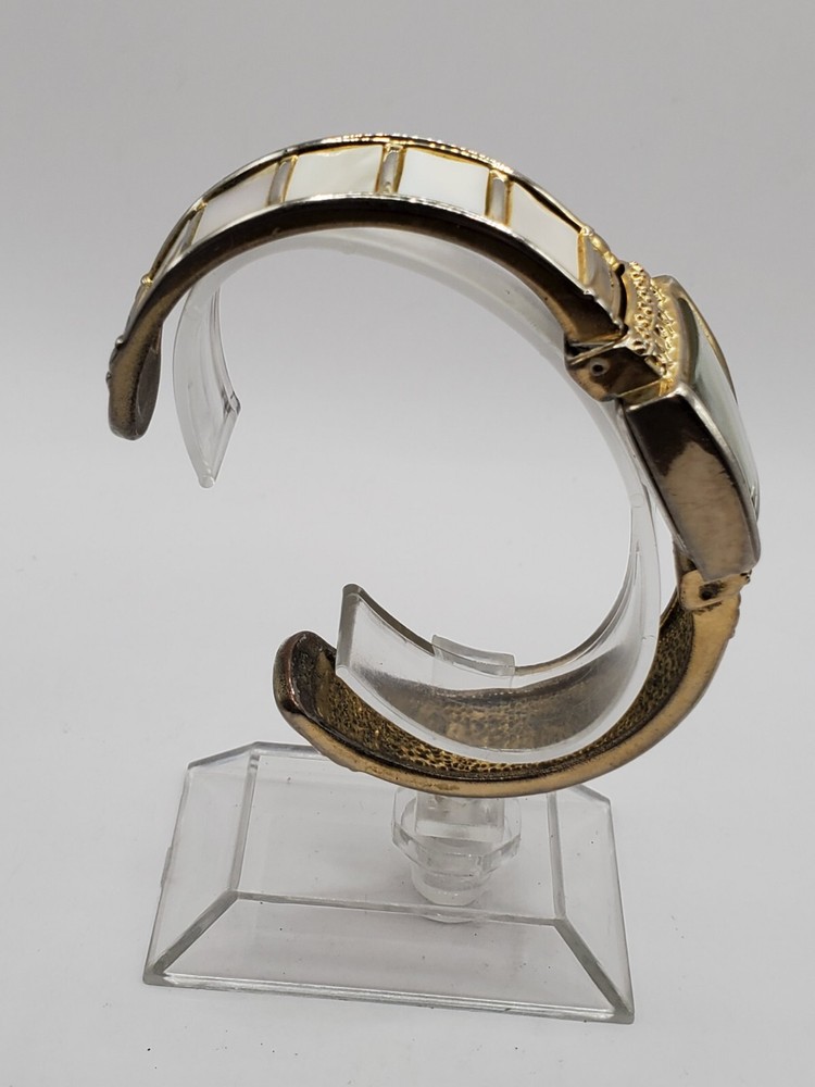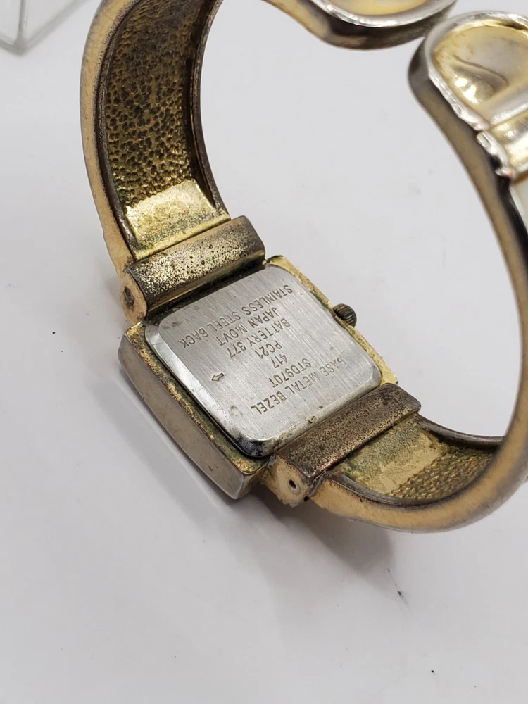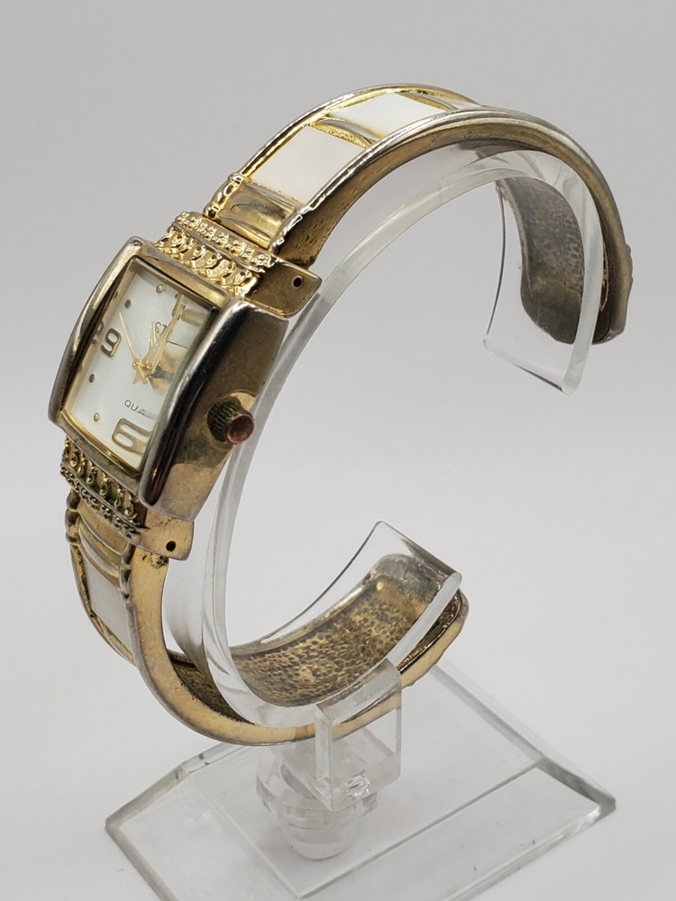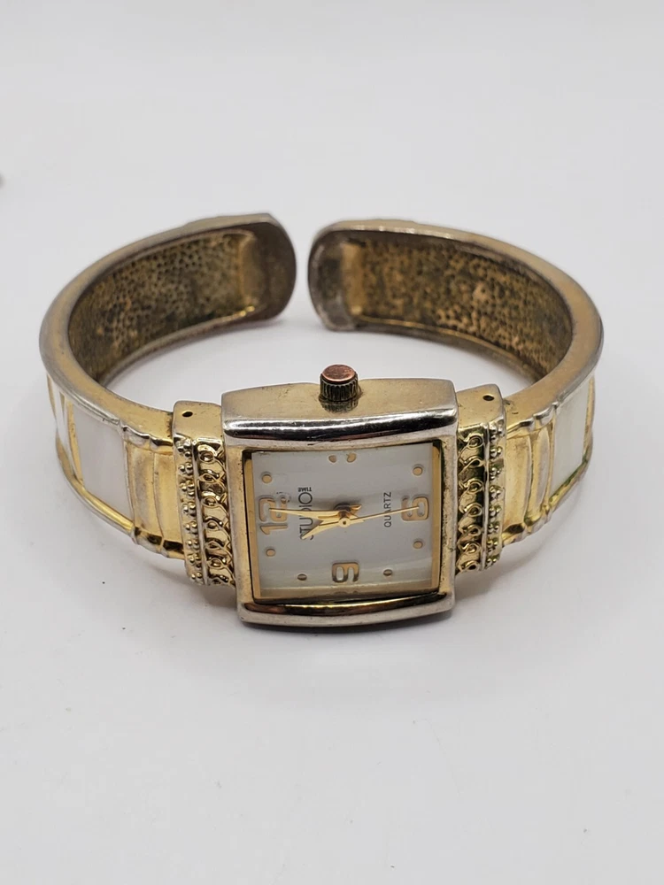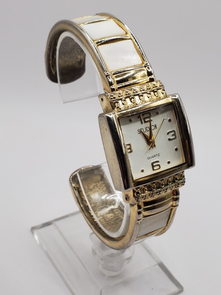 Studio Time Ladies Gem Quartz Watch 26mm Square Gold Tone MOP Bracelet Band Beautiful watch - MOP inserts on band 7" - discoloration on back but front like new New battery - works great Watches are cleaned and new battery installed. I monitor for 48hrs to make sure they are keeping good time. I try to disclose any issue with the watch, but at times a flaw can be overlooked. If for some reason watch is not working upon receipt please return so I can diagnose problem and issue refund. I want watch back so I can head off problems in future. I pack in small box with bubble wrap to protect during shipping. I try to list strap size or show size in photos on all listing but if missing please ask before purchase. If for some reason watch does not fit you can buy new strap(at your expense) or have links installed by local, reputable watch repair shop. I strive for excellent customer service and would like a chance to rectify any problems before you leave a negative review. Thanks for supporting my small business. With all the choices you have I really appreciate your patronage. Item usually ships within 24 hours - 30 day return