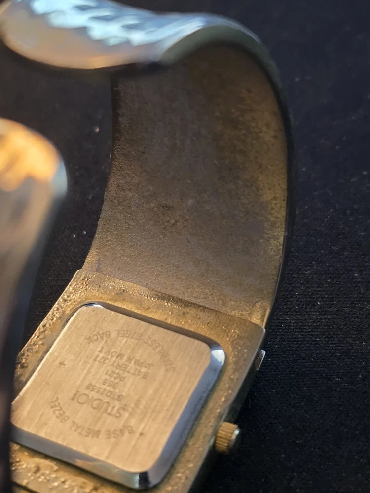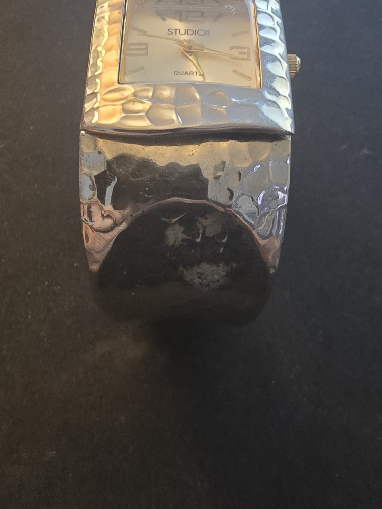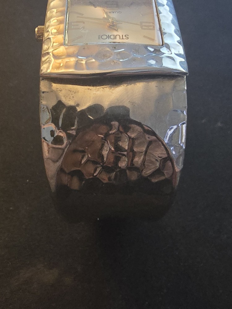 Studio Time Watch Women 27mm Silver Tone Hammered Metal Open Cuff Needs Battery TESTED AND WORKED BUT NEEDS NEW BATTERY. We are committed to providing quality items with fast and reliable shipping. Every order is carefully packed and shipped the next business day to ensure prompt delivery. What to Expect: All items included in this listing are shown in the photos—what you see is exactly what you will receive. We take great care in packaging to ensure your item arrives safely. Your satisfaction is important to us! If you have any questions or concerns before or after your purchase, please don’t hesitate to reach out. We're happy to help and will respond as quickly as possible. Thank you for shopping with us—we appreciate your business!