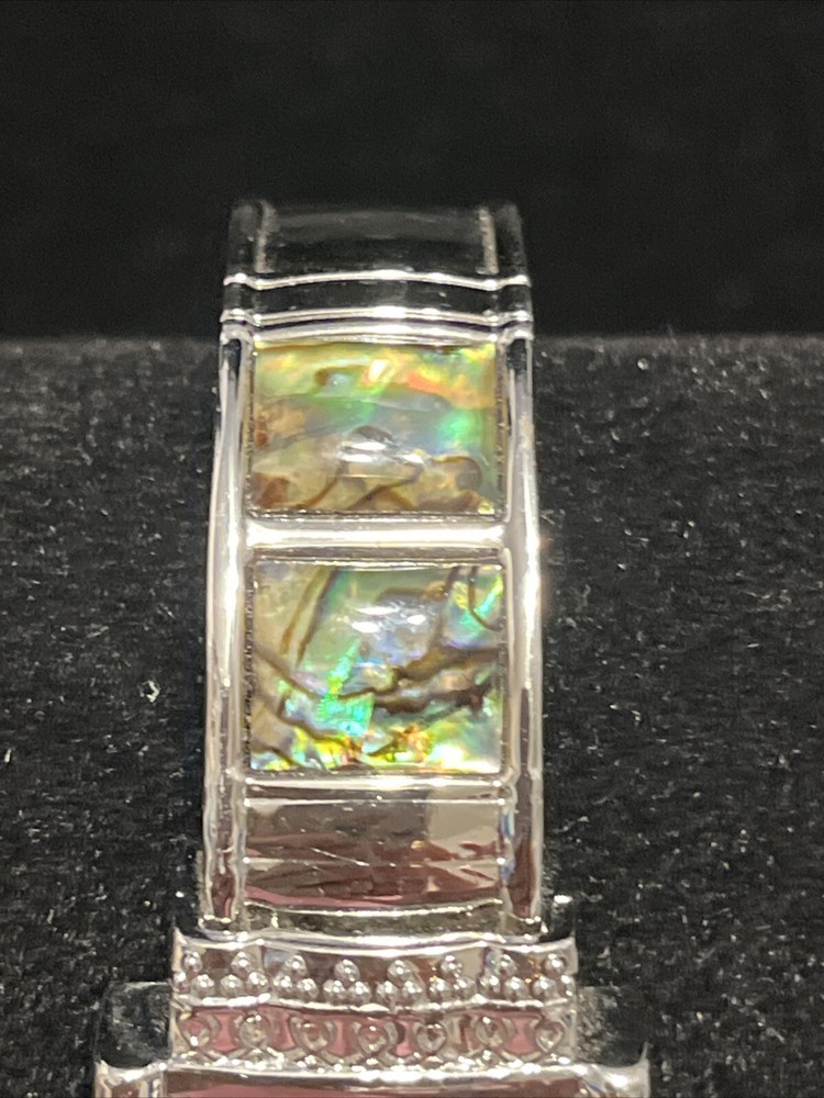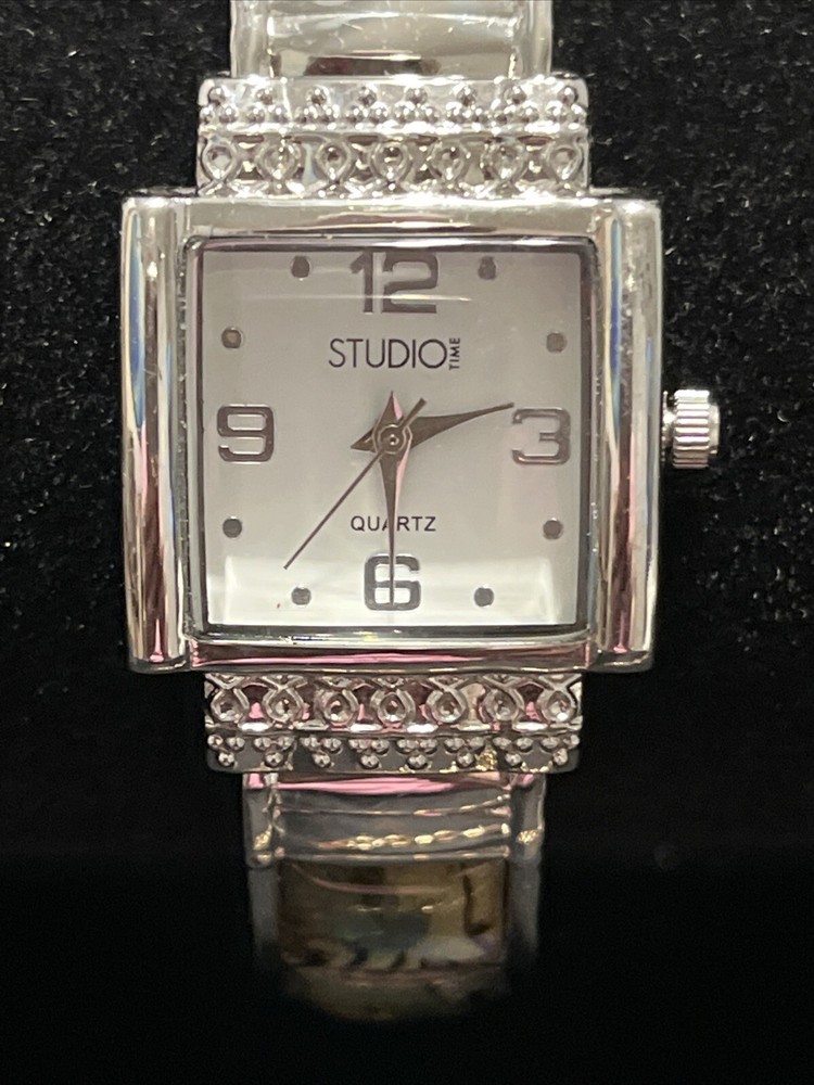 Studio Time Watch Women Silver Tone Open Cuff Abalone Inlay New Battery 6.25". Just push in stem to activate. Glass clear. Has light markings on under side of band. Abalone inlay intact All orders require payment within 48 hours. We report non-payment buyers and block for further purchases. We ship every postal weekday, so we meet or exceed anticipated shipping time estimates. Combined shipping may be available if safe to combine items. Check your choices of shipping options because prices vary by location and weight of items. Thanks for visiting Specialty Finds - Unique Items and Treasures. You just never know what you may find here! We have a wide variety of items in a variety of price ranges. Most of the items are limited so don?t miss your chance. All items are from a climate controlled, smoke free, pet free environment. Visit our store http://stores.ebay.com/specialtyfinds or click on our seller's name for additional items.