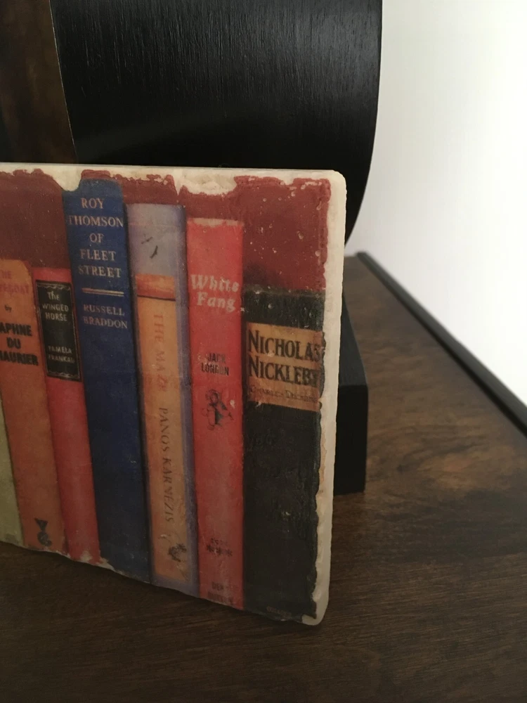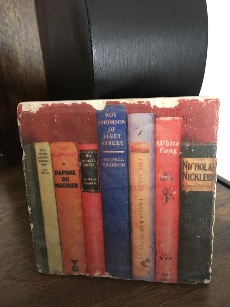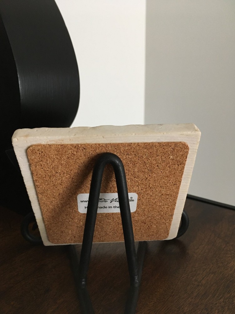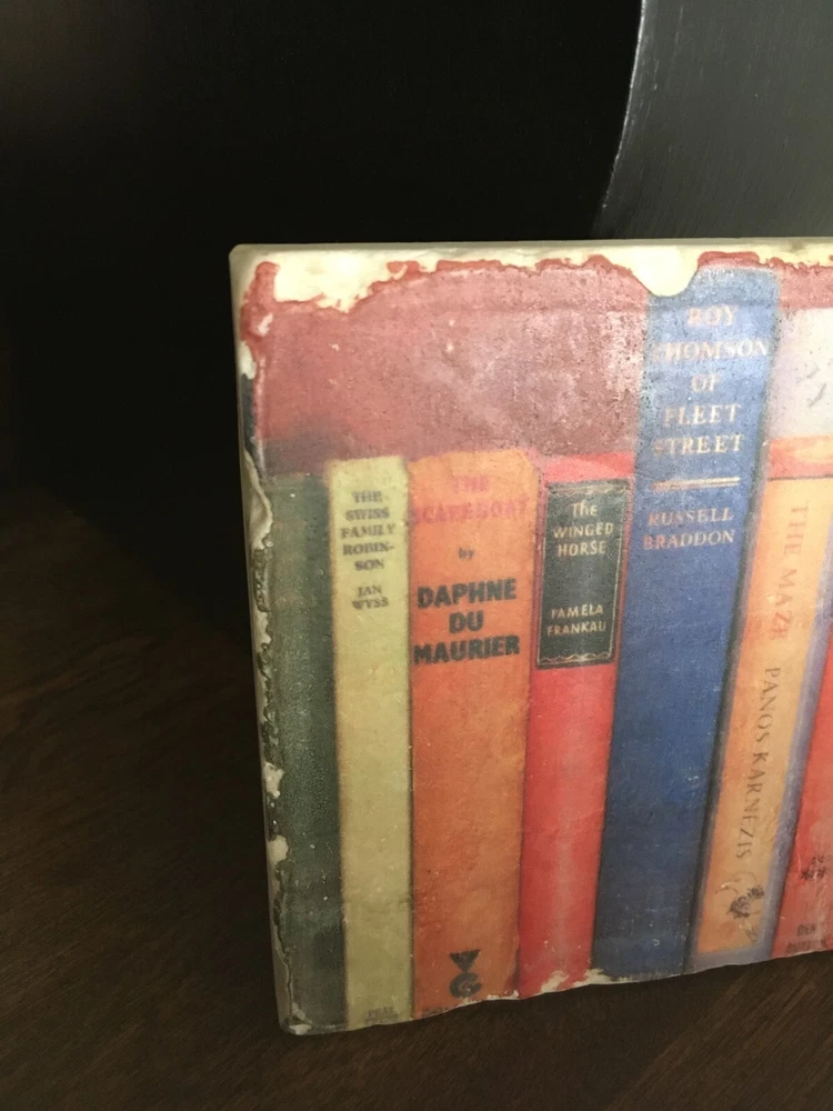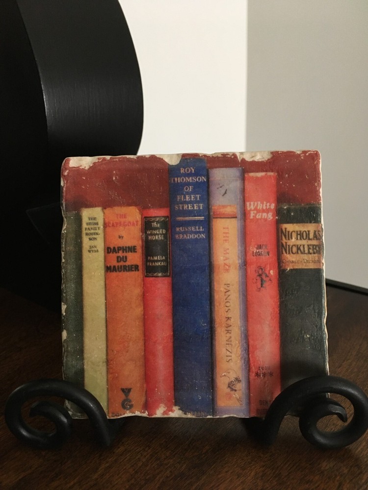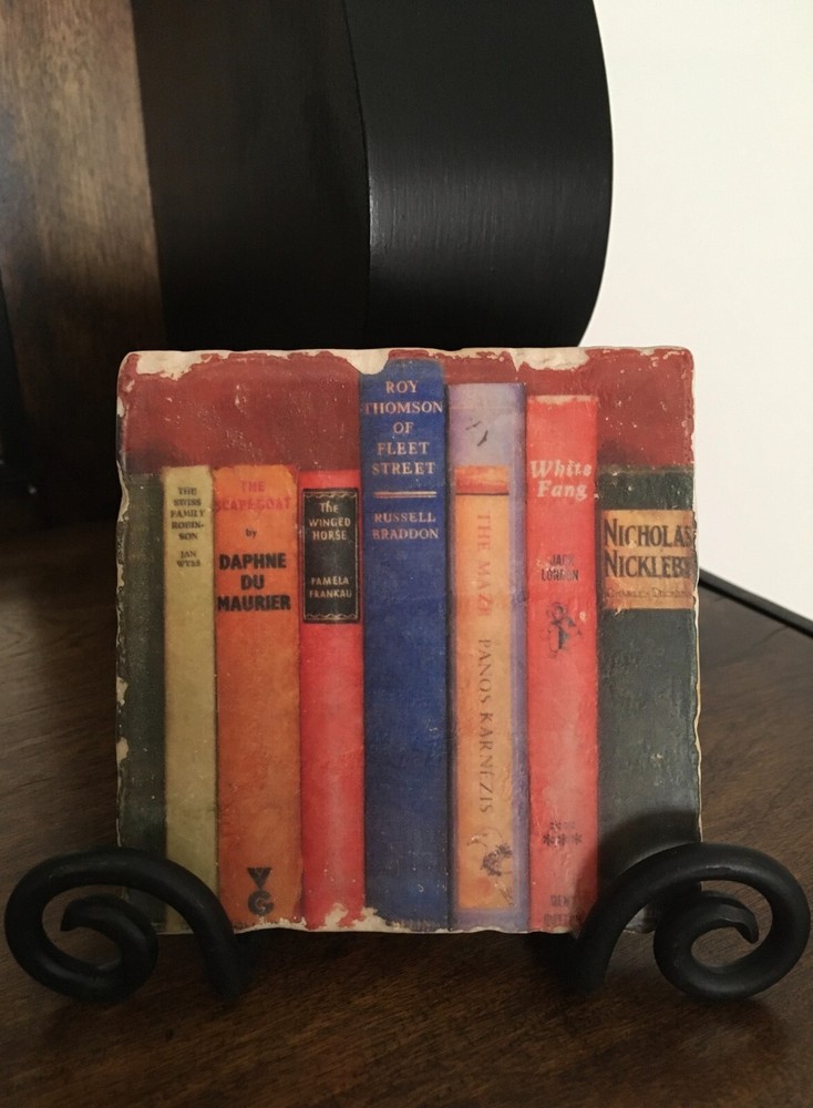 You are purchasing a beautiful Studio Vertu Tile & Stand. Lovely books design with rich colors and chippy detail. Great conversation piece! Wrought iron stand included. Measures 3.5"High x 5"Wide. Tile measures 4"High x 4"Wide. This item will be sent out in 3 business days by USPS ground shipping. This item is sold as is with no returns or exchanges. I accept PayPal only and ship to the US only. Please contact me if you have any questions. Many thanks! :)