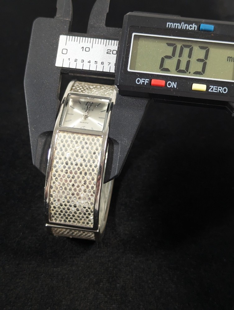 This watch is absolutely stunning! The silver-tone square case and shimmery hinge bracelet give it such a chic, elegant look. It fits perfectly on my 7-inch wrist and feels lightweight yet durable. The dial is easy to read, and the overall design is versatile—dressy enough for work but also great for casual outings. Super fast shipping and excellent customer service too! Highly recommend!