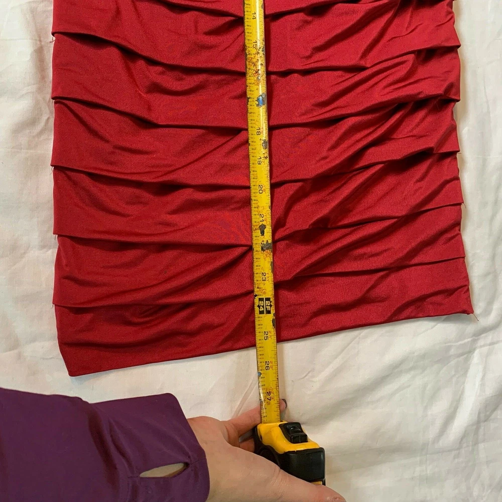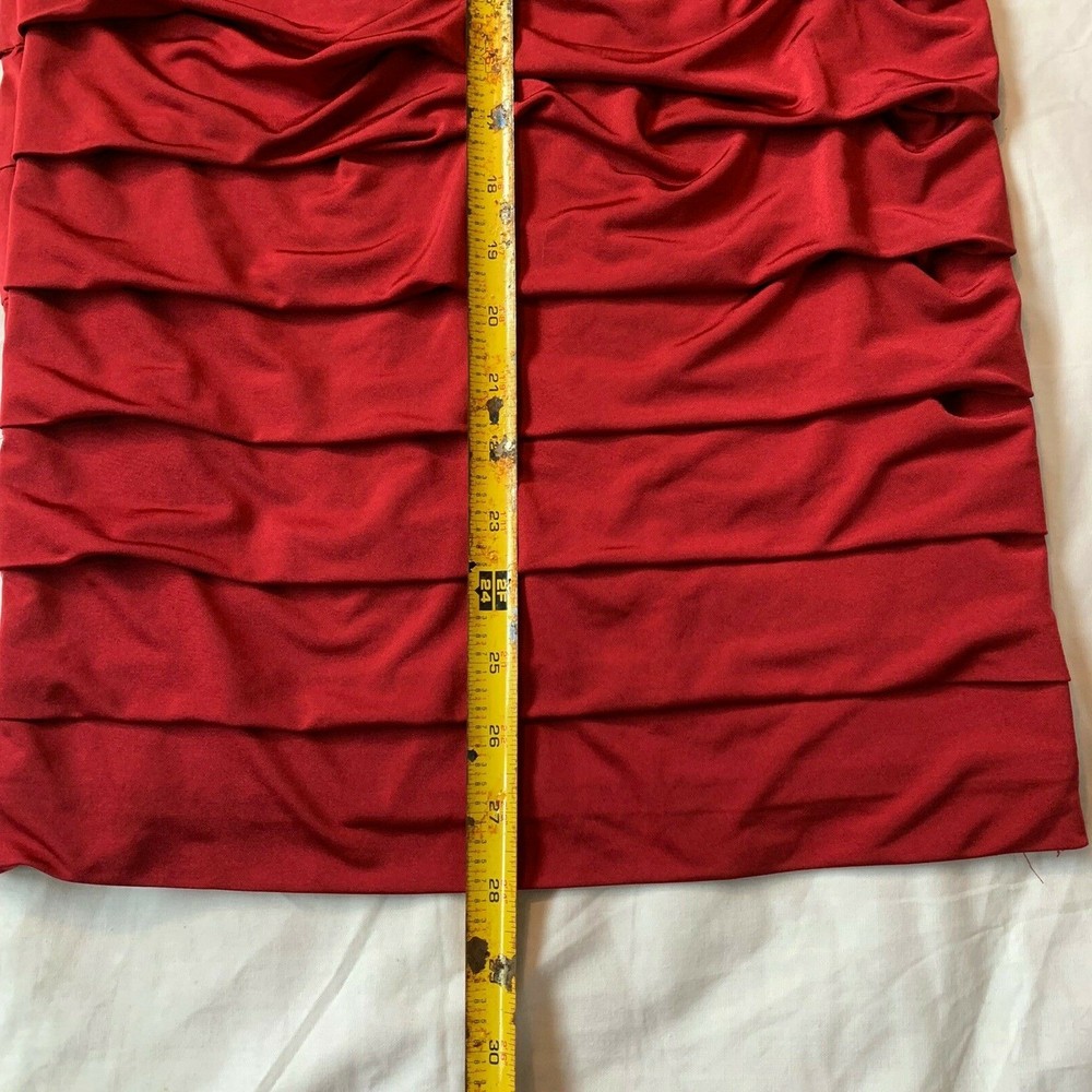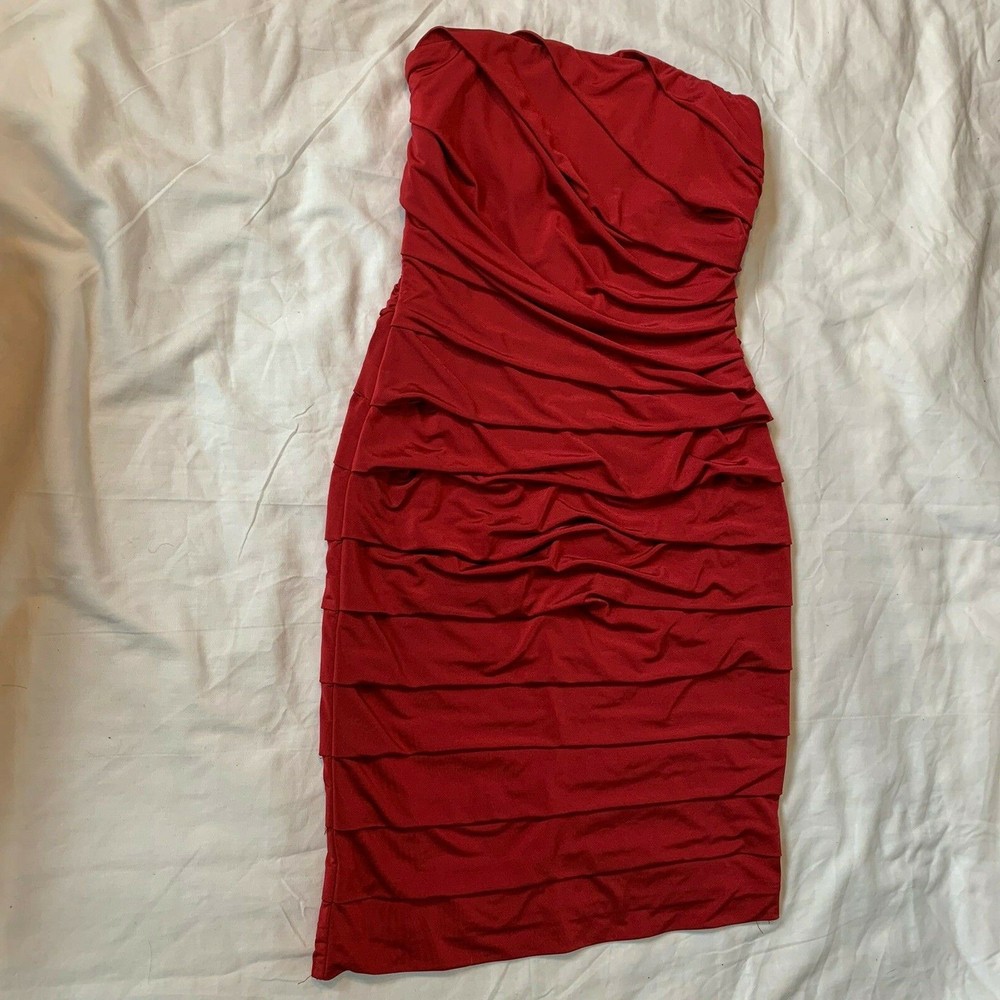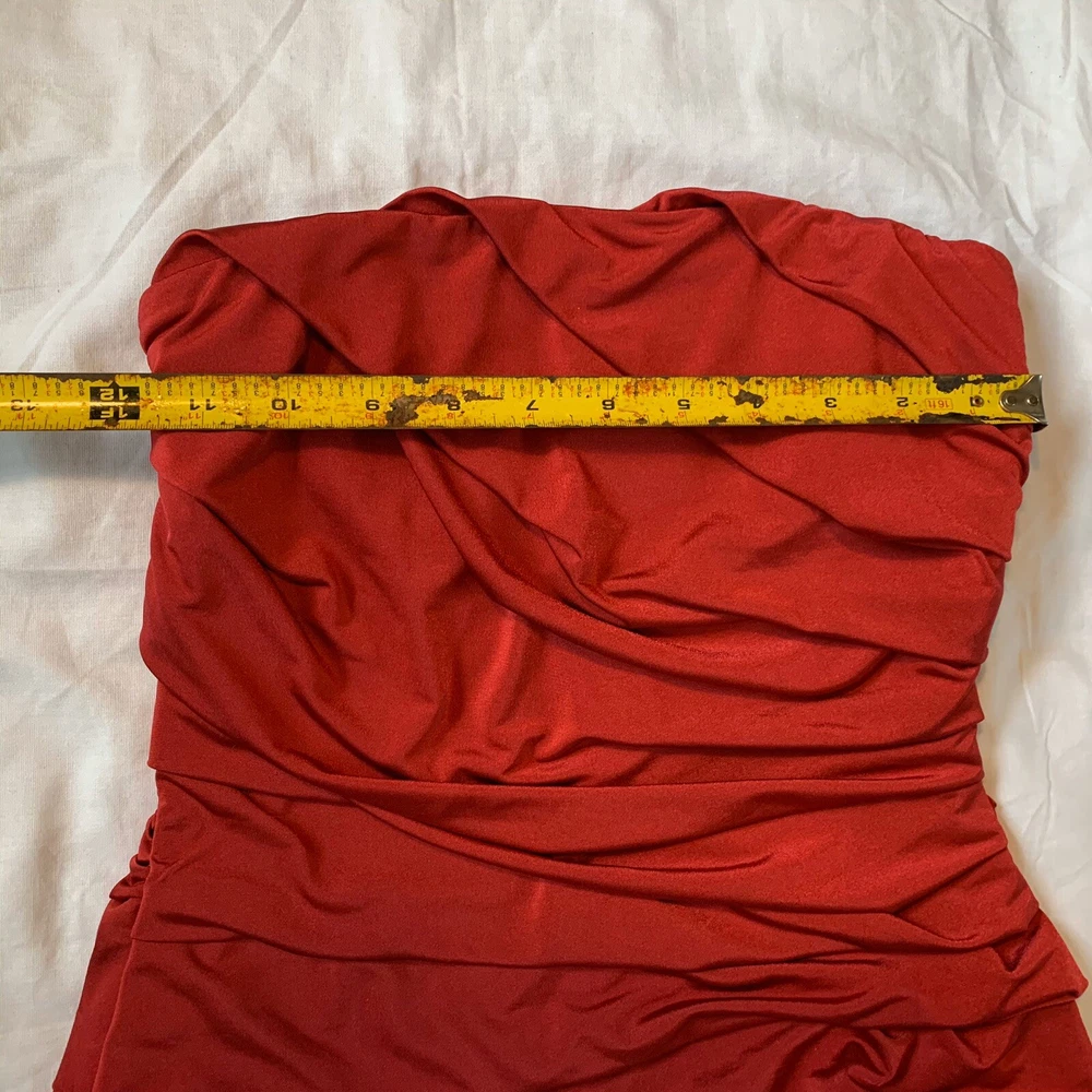 Studio Y Stretchy Strapless X-Small Cocktail Dress Red Wear it with a shear kimono & heals, or wedges and a cardigan for the holidays Loved this because it has plenty of stretch, can be more scrunched up for a shorter fit or, stretched long for a mid thigh length! Condition is pre-owned, but well loved Measurements are in pics, laid flat with no stretch Shipped with USPS Priority Mail. M2