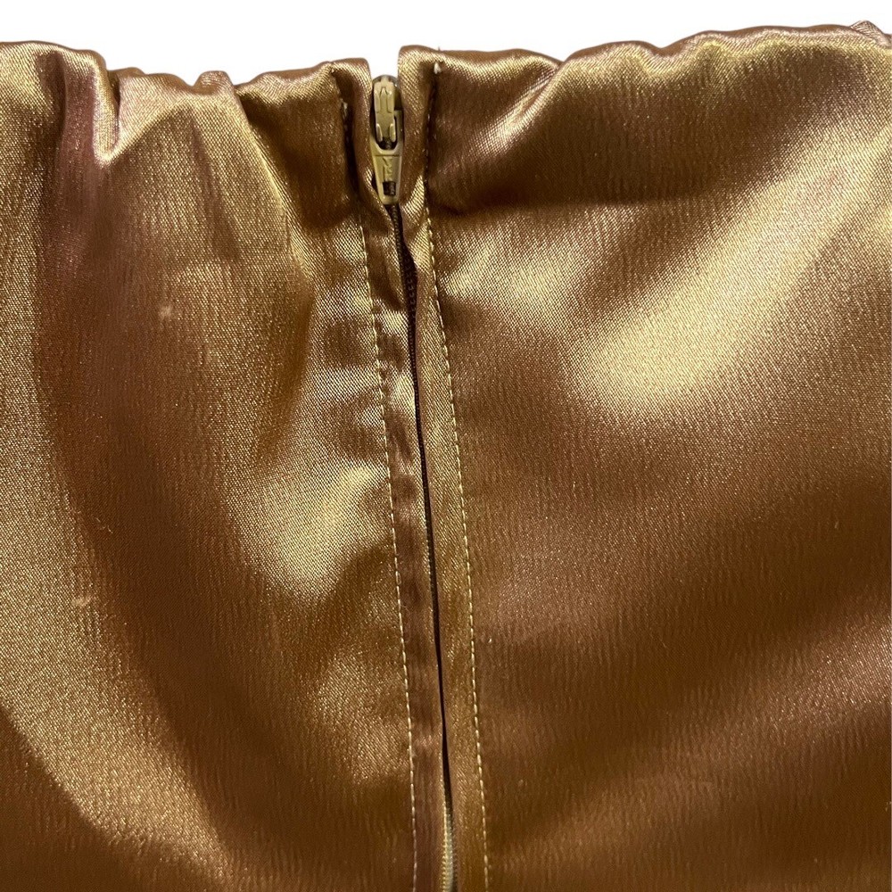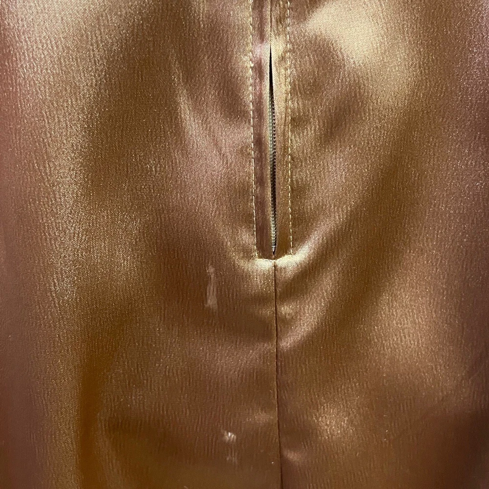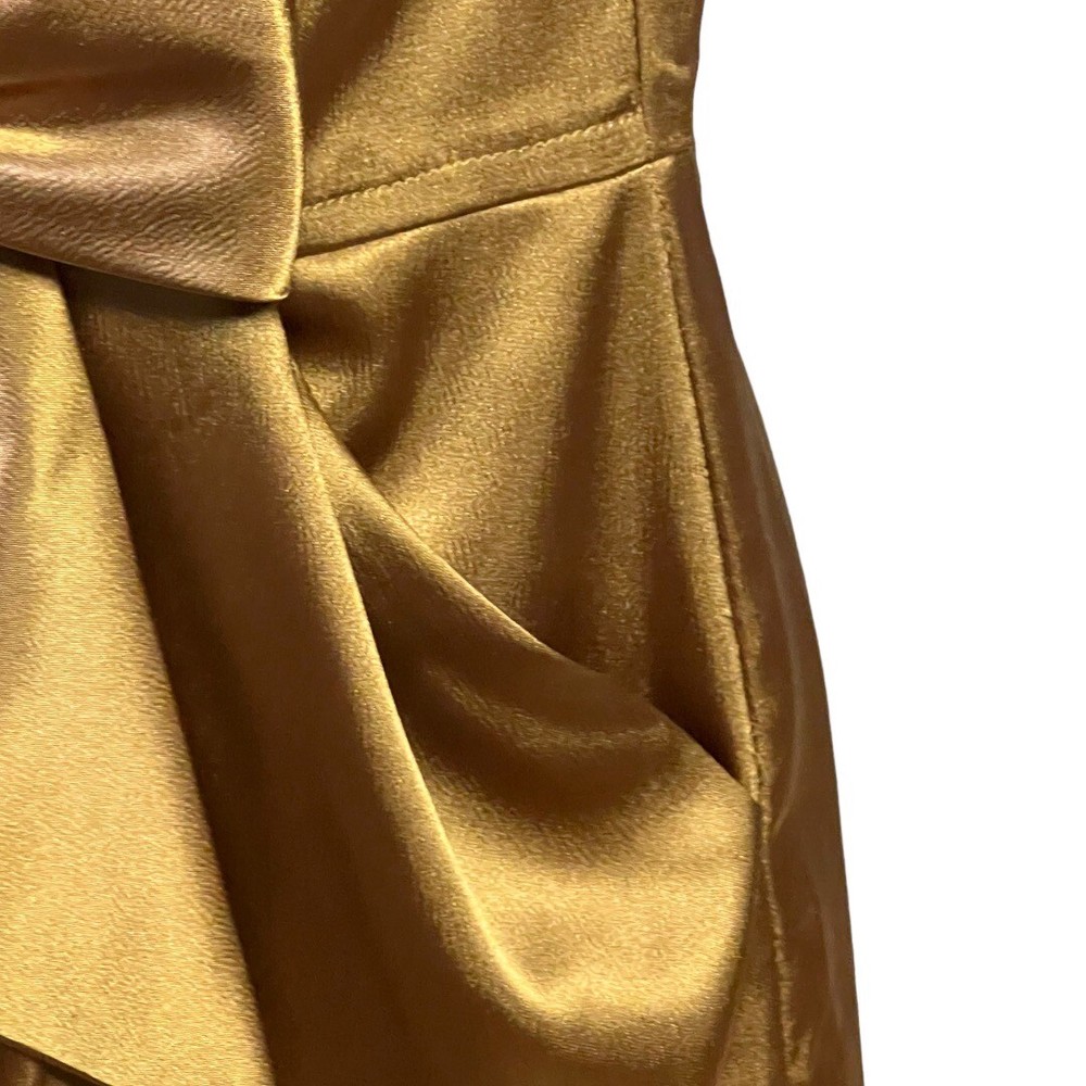 This dress is absolutely stunning! The gold satin fabric has a luxurious sheen, and the sweetheart neckline with the bow detail adds such a chic, feminine touch. It fits like a dream—flattering and comfortable. Perfect for a night out or a special occasion. The preowned condition is great, just as pictured. Love it!