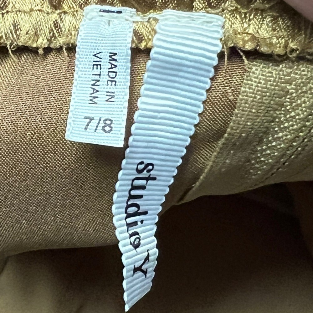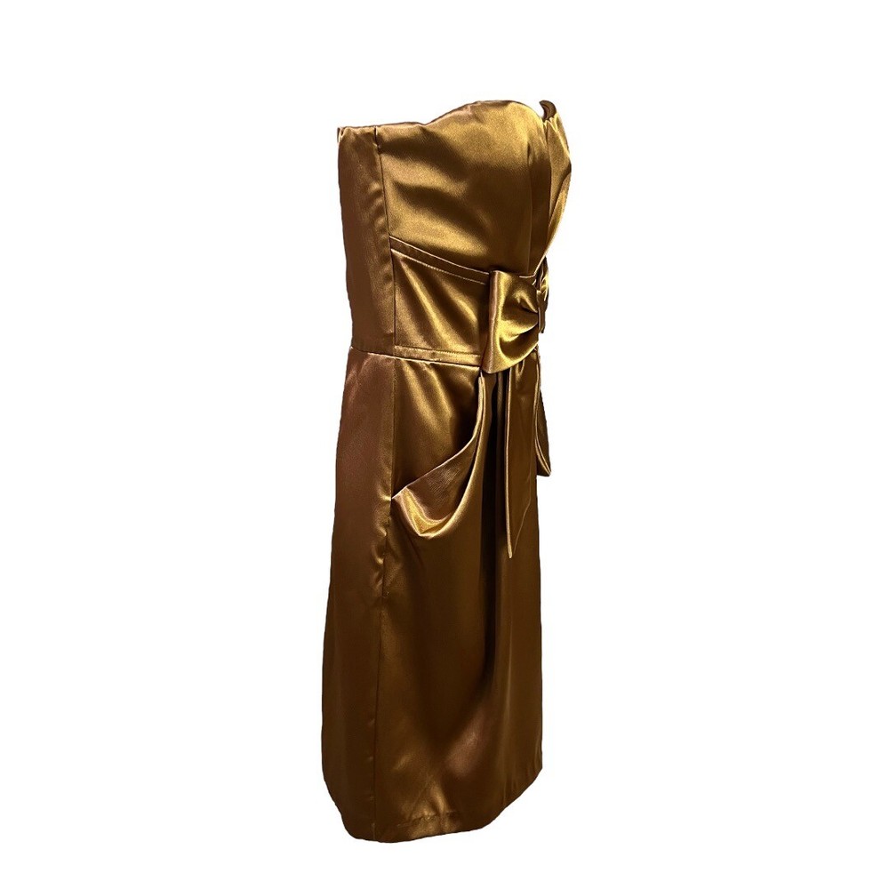 Studio Y Womens Sheath Dress Gold Mini Sweetheart Neck Strapless Bow Satin 7/8 Preowned - see pictures Bust 31" Length 26" Brand: Studio Y Size: 7 Style: Sheath Dress Material: Polyester Blend Accents: Bow Dress Length: Mini Color: Gold U1 Sold as pictured. Thanks for looking!
