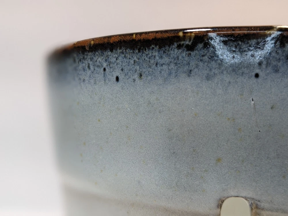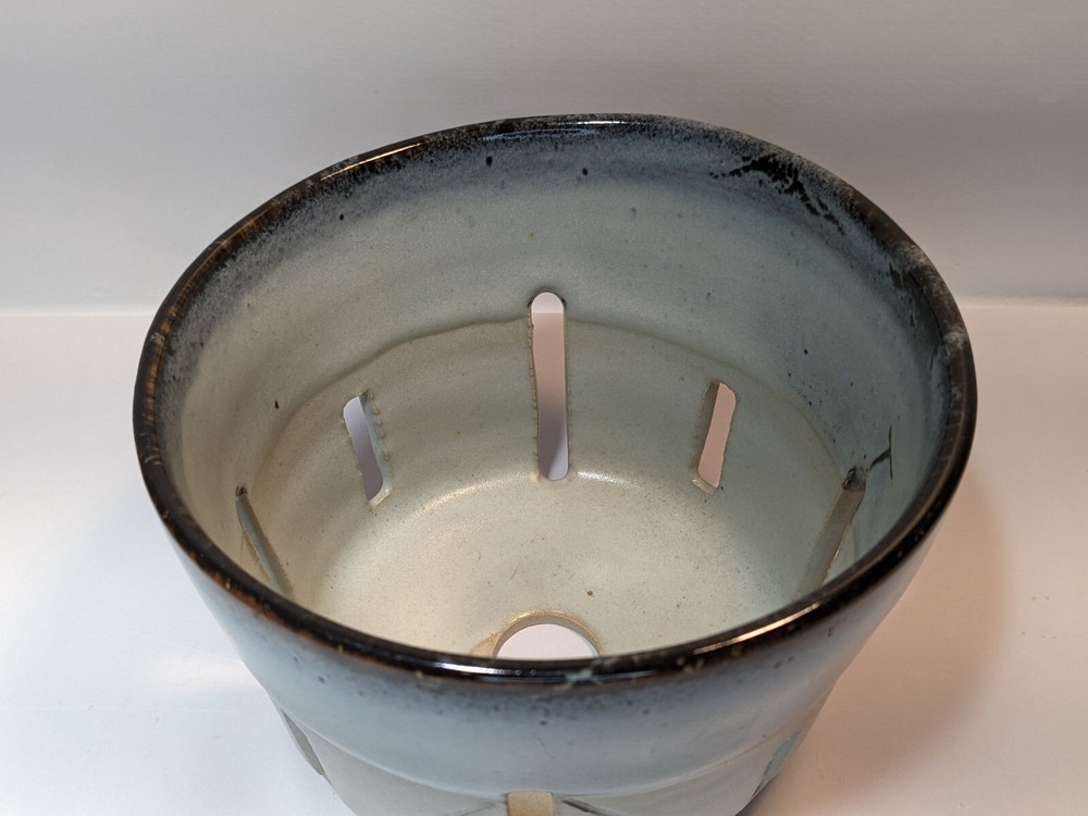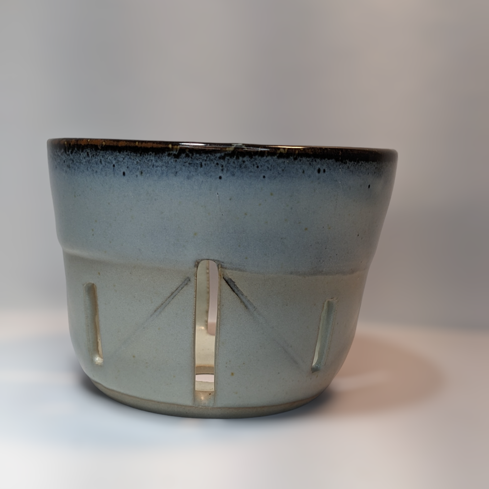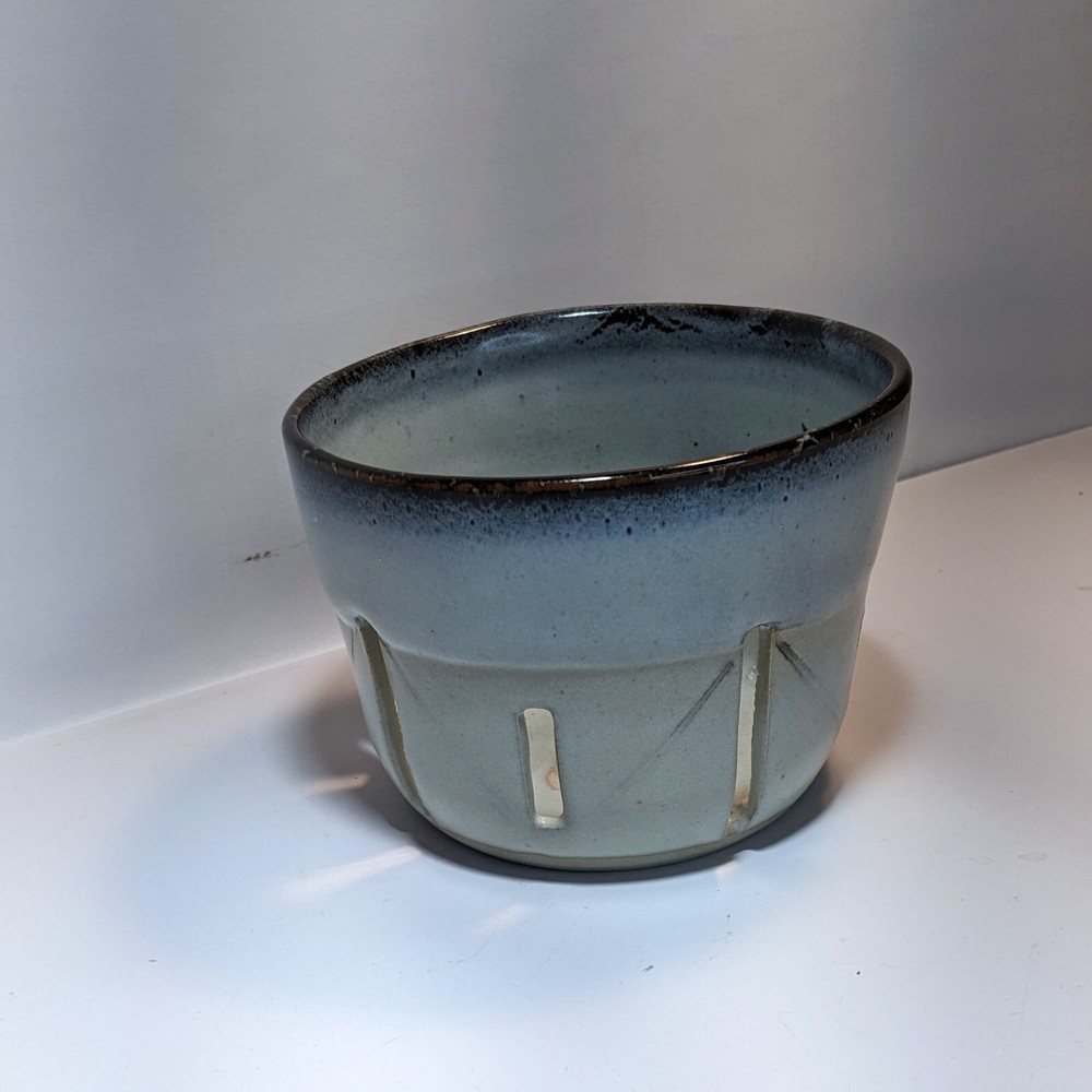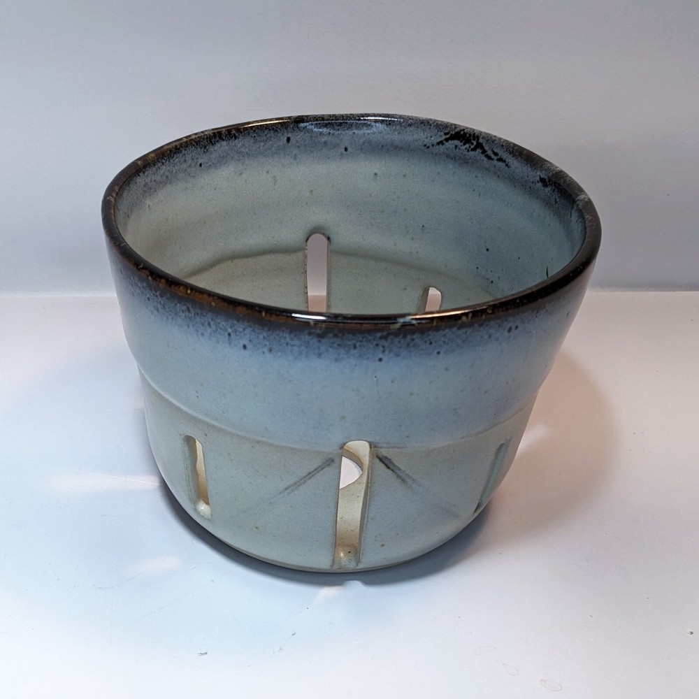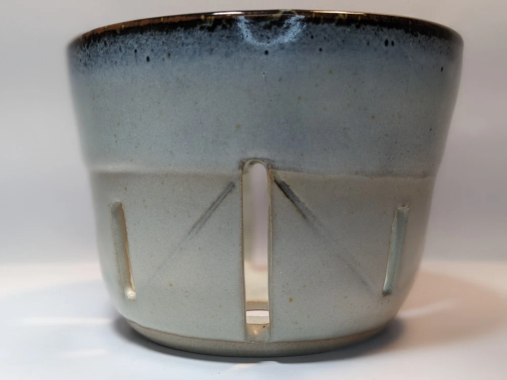 Cute one-of-a-kind Berry bowl, handcrafted and glazed, muted light blue, subtle color with a gray bottom half and a touch of deep brown at the rim. Great condition, no chips, cracks, or repairs. The pictures shown accurately depict the item(s) you will be receiving; therefore, they should be considered part of the description. We encourage you to inspect every image. Contact us to ask questions or for specifics regarding this listing.