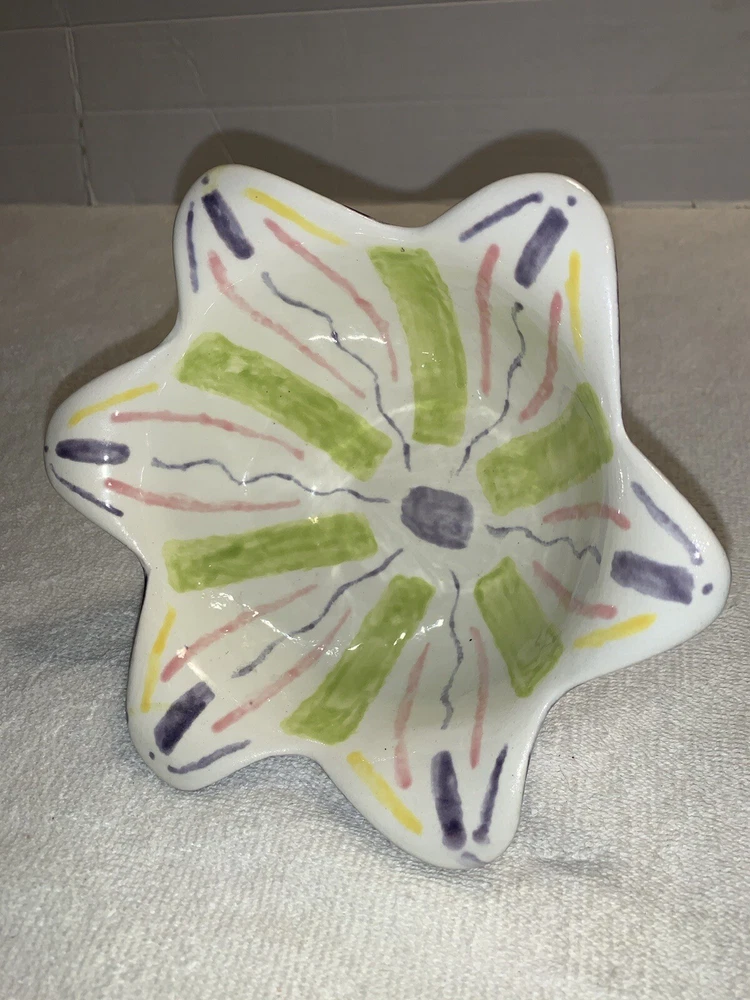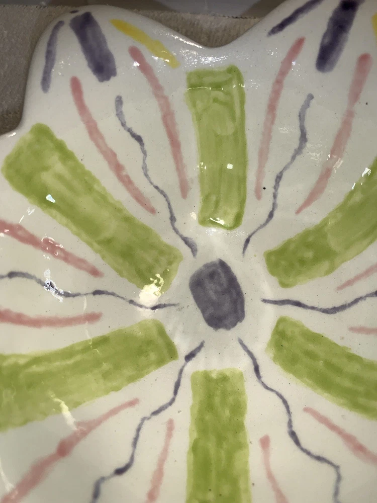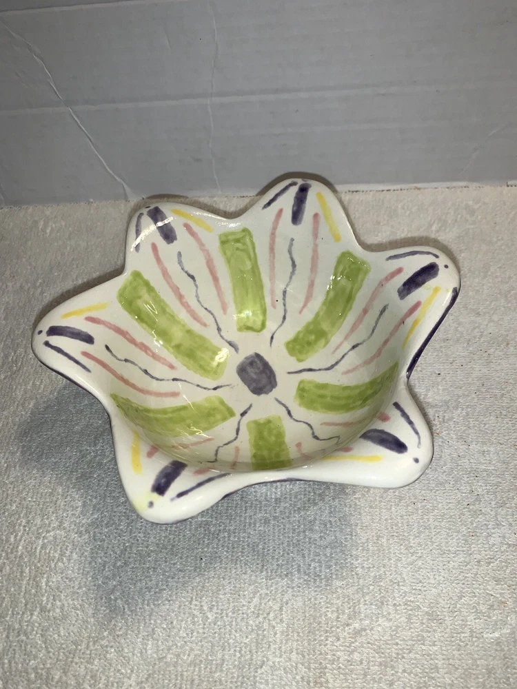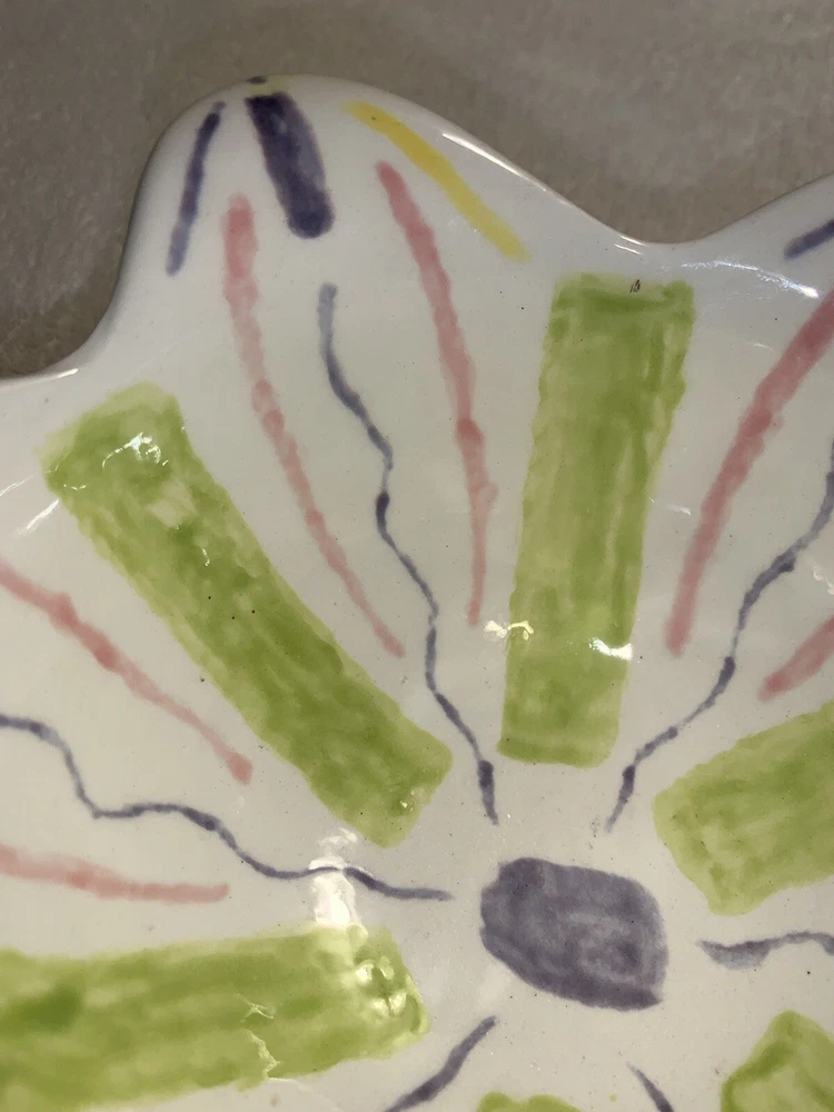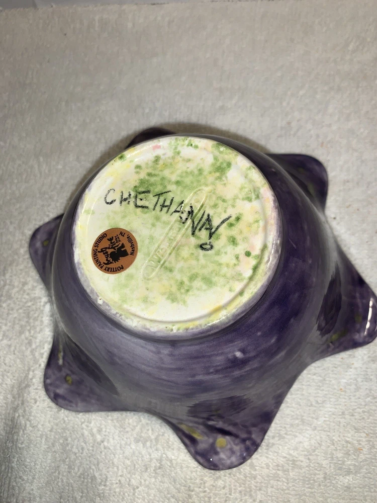 Studio art tulip edge bowl, pottery hand painted painting studio Nashville tn. No chipping no cracks no brakes Good condition Multi colored...
