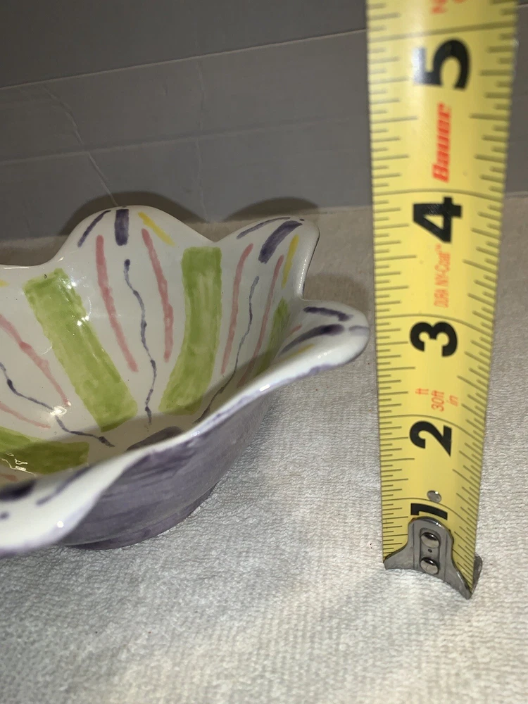 Studio art tulip edge bowl, pottery hand painted painting studio Nashville tn. No chipping no cracks no brakes Good condition Multi colored