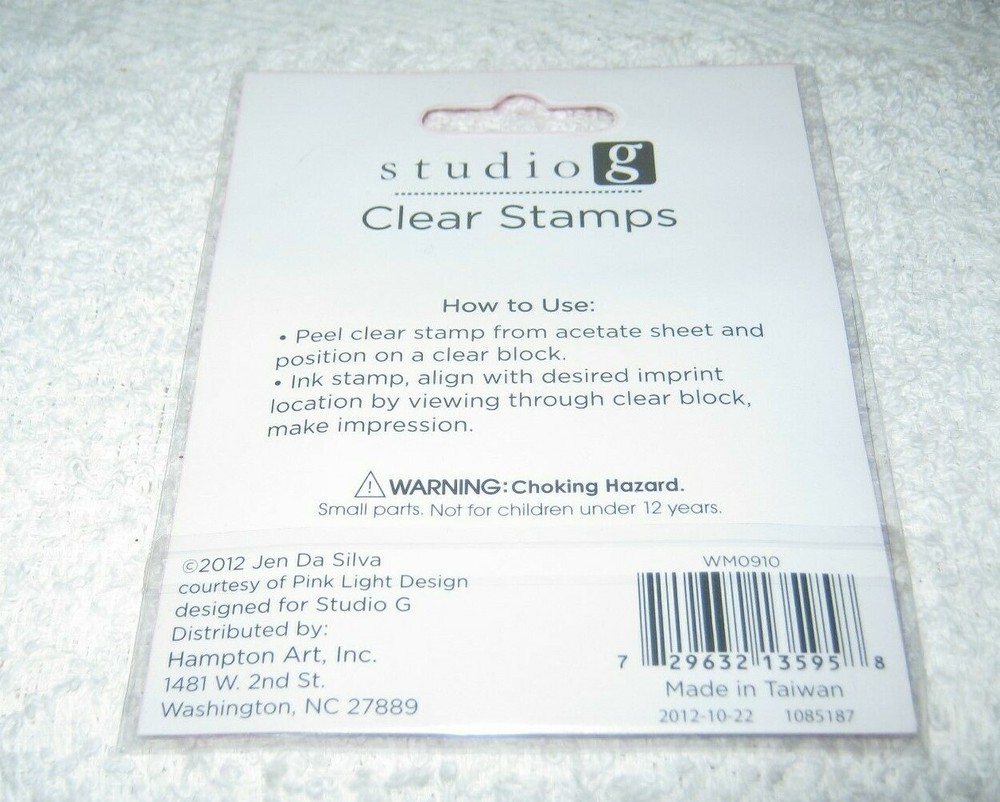 Welcome and thanks for stopping in. For your consideration, I have a package of clear stamps. Brand: Hampton Arts - Studio G - Item # WM0910. The package contains 3 stamps Condition: The stamps are new Please reference all photos as they are part of the discription. Shipping for the stamps will be $4.00 via First Class Mail with delivery confirmation. I am always happy to combine shipping. If you buy multiple items, please wait until I can invoice you. This way I can combine shipping charges. Payment is due within three days of receiving invoice. Please communicate with me if you need longer than three days to make payment. I do list new and used items. The used items I list will come from estate sales, flea markets and book sales. I do try to describe the items to the best of my knowledge and keep in mind they have been used and loved by a previous owner. I do want you to be happy with your purchase and will do my best to provide you with five-star service. Do not hesitate to e-mail me with any questions or if you would like additional pictures. Happy Bidding!! XO – Michele Lot 50