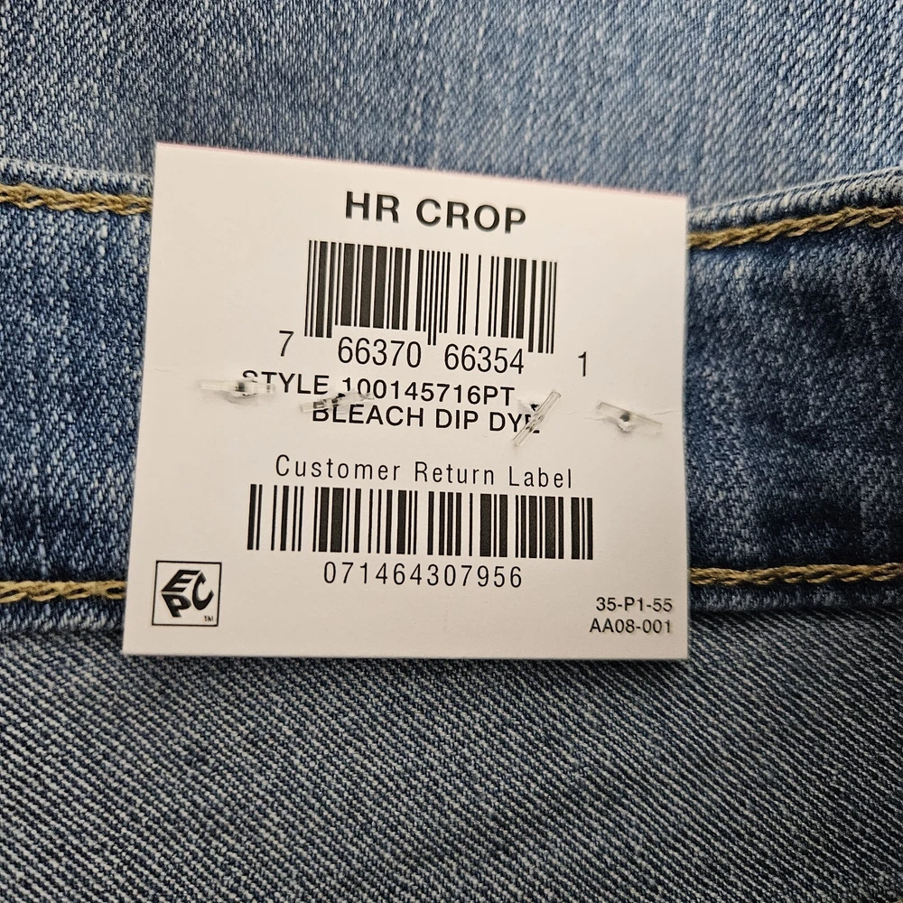 These jeans are a perfect fit—flattering high-rise, great cropped length, and the bleach dip dye adds a stylish touch. Super comfortable and true to size, they look even better in person! The quality is fantastic, and they arrived brand new with tags. Fast shipping and excellent seller communication. Highly recommend!