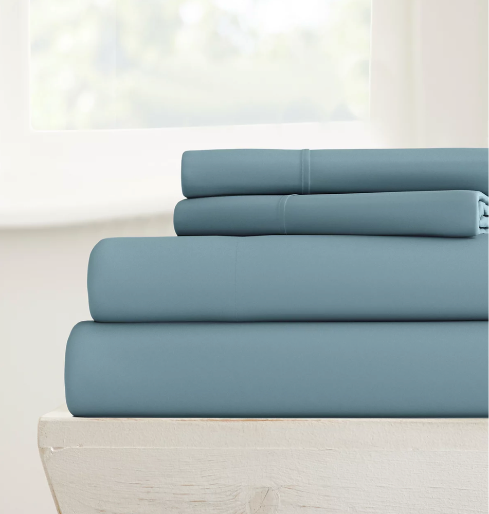 Experience the comfort and simplicity of Style Simplified by the Home Collection's 4 Piece Bed Sheet Set, perfectly tailored for a queen-sized bed. The serene ocean color offers a tranquil touch to your bedroom decor, while the solid color design maintains a clean and sophisticated look. Crafted from soft polyester, this sheet set promises to provide a cozy and inviting feel every time you climb into bed. Convenience is key with these sheets, as they are designed for easy care. Simply follow the machine wash instructions to keep them looking fresh and crisp. With a commitment to quality and ease, this sheet set from IEnjoy Home adds a layer of elegance and practicality to your sleep space.