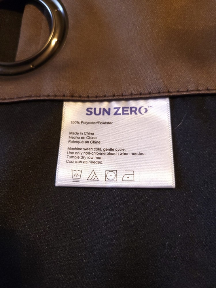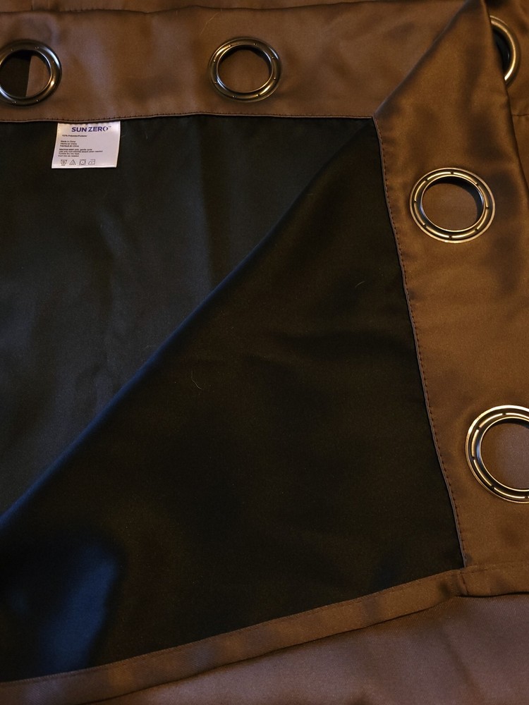 Sun Zero 100% eclipse / blackout curtains with draft shield technology. Nice, modern style, classic, medium weight satin-look flat-hang curtains. 2" metal grommets for hanging. 100% polyester. Medium chocolate brown. Inner lining is black. 100% blackout/eclipse. Draft shield protection. Includes 2 panels. 40" wide x 84" long. (80" actual length, if measuring from hem below grommets to bottom hem). Curtains were never used. They were taken out of the original package and unfolded but never used. Great condition. No defects noted.