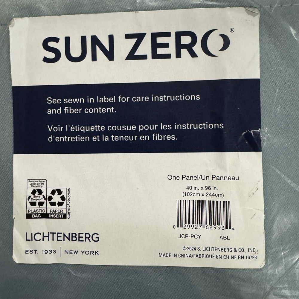 Sun Zero 100% Blackout Grommet Curtain Panel 40” x 96” Blue New E2. Condition is New. Shipped with USPS Ground Advantage.
