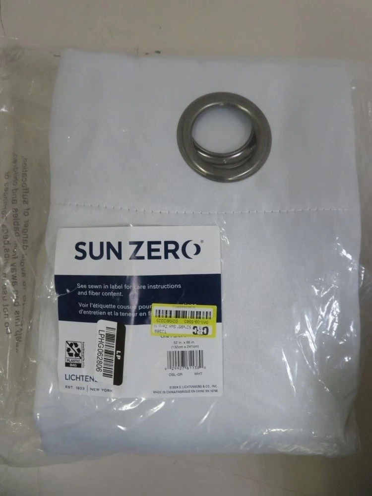 Highlights Extreme Blackout technology blocks out 100% of outside light Energy Efficient design reduces energy lost through your windows by up to 50% Thermal properties help keep summer heat and winter chill out of your home Noise reduction by up to 45% helps you get a sounder, more uninterrupted sleep Includes 1 single grommet curtain panel made from machine washable material Description Sun Zero Oslo Curtain Panels provide the ultimate in light blocking technology to keep out even the harshest of light while bringing an elegant urban sophistication to any room of your home. Sun Zero Extreme Blackout technology is laboratory tested to block out 100% of light, reduce outside noise by up to 45%, and decrease energy lost through your windows by up to 50%. Comfort is optimized with thermal properties that help keep summer heat and winter chill out of your home. Hang in your entertainment room to eliminate screen glare and reduce distracting outside noise, or in your bedroom for enhanced privacy and a sounder, more uninterrupted sleep. Sold as individual panels. Measure carefully before selecting your desired size and quantity. Rod not included. Machine wash cold on gentle cycle. Use non-chlorine bleach when needed. Tumble dry on low heat, using a cool iron as needed. We will be happy to answer any questions or provide more information, just click "ask a question" at the bottom of the page. Thanks! Sun Zero 100% Blackout Oslo Theater Grommet Curtain Panel 52" W x 95" L White Sun Zero 100% Blackout Oslo Theater Grommet Curtain Panel 52" W x 95" L White Click images to enlarge Description Highlights Extreme Blackout technology blocks out 100% of outside light Energy Efficient design reduces energy lost through your windows by up to 50% Thermal properties help keep summer heat and winter chill out of your home Noise reduction by up to 45% helps you get a sounder, more uninterrupted sleep Includes 1 single grommet curtain panel made from machine washable material Description Sun Zero Oslo Curtain Panels provide the ultimate in light blocking technology to keep out even the harshest of light while bringing an elegant urban sophistication to any room of your home. Sun Zero Extreme Blackout technology is laboratory tested to block out 100% of light, reduce outside noise by up to 45%, and decrease energy lost through your windows by up to 50%. Comfort is optimized with thermal properties that help keep summer heat and winter chill out of your home. Hang in your entertainment room to eliminate screen glare and reduce distracting outside noise, or in your bedroom for enhanced privacy and a sounder, more uninterrupted sleep. Sold as individual panels. Measure carefully before selecting your desired size and quantity. Rod not included. Machine wash cold on gentle cycle. Use non-chlorine bleach when needed. Tumble dry on low heat, using a cool iron as needed. We will be happy to answer any questions or provide more information, just click "ask a question" at the bottom of the page. Thanks! Pictures sell! Auctiva offers Free Image Hosting and Editing. 300+ Listing Templates! Auctiva gets you noticed! The complete eBay Selling Solution. Track Page Views With Auctiva's Counter