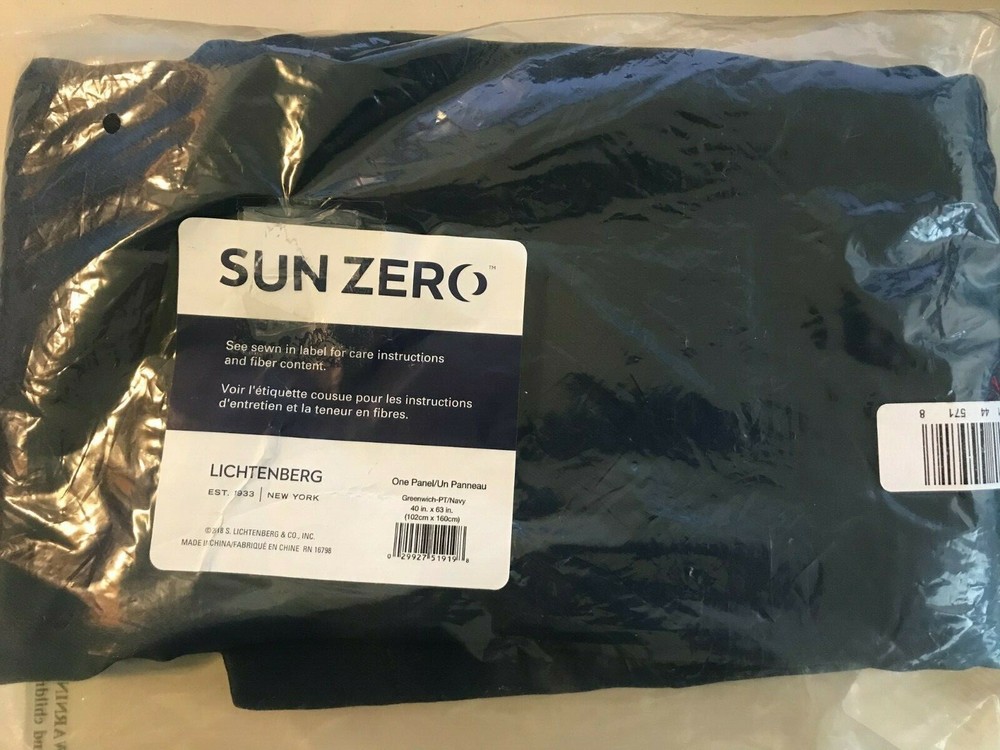 New in bag 'Sun Zero' 100% Blackout Rod Pocket Curtain Panel. Size: 40x63. Color: Navy. Qty: 1 Panel Retail: $35/each