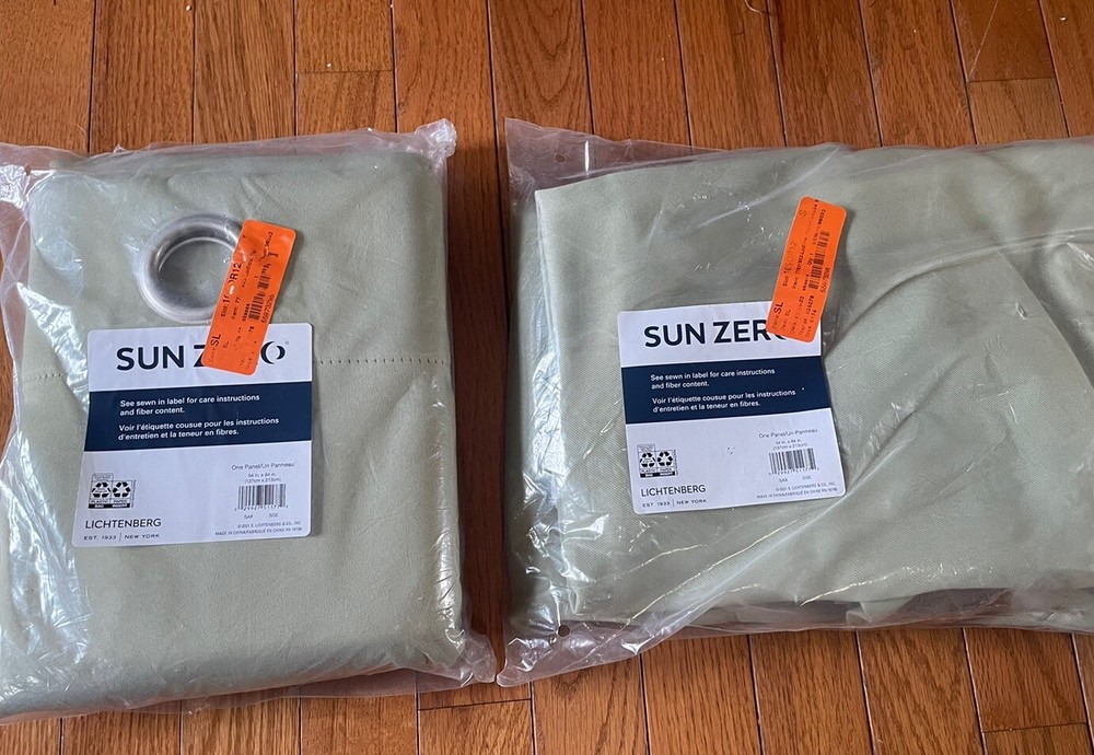 Enhance the decor of your nursery or indoor space with these modern Sun Zero blackout window curtains. Made of durable polyester blend fabric, these drapes come in a size of W52 x L84 and feature a solid pattern in greyish green color. The curtains have an adjustable rod pocket for easy hanging and are compatible with rods up to 1.7 inches in size. These 2 panels of curtains are perfect for all seasons and provide complete blackout, ensuring your privacy and keeping the room cozy. The package weight is 2.9 kilograms and the item weight is 2.83 kilograms. The curtains are machine washable and come with a liner for added durability.