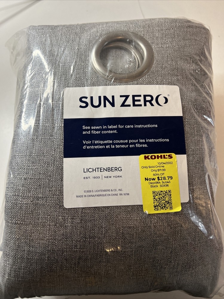 Add a touch of modern elegance to any room with this Sun Zero 50x84" Lichtenberg Blue Blackout Grommet Top Window Panel. The solid grey color and sleek grommet design make it a perfect fit for any décor. Made of high-quality polyester material, these panels are perfect for indoor use and are 84 inches in length. The blackout feature makes it perfect for any room, providing privacy and keeping out unwanted light. The panel is brand new, never used, and ready to be hung up for use. Upgrade your home with this stylish and functional window panel today. Item inspected to the best of our abilities.