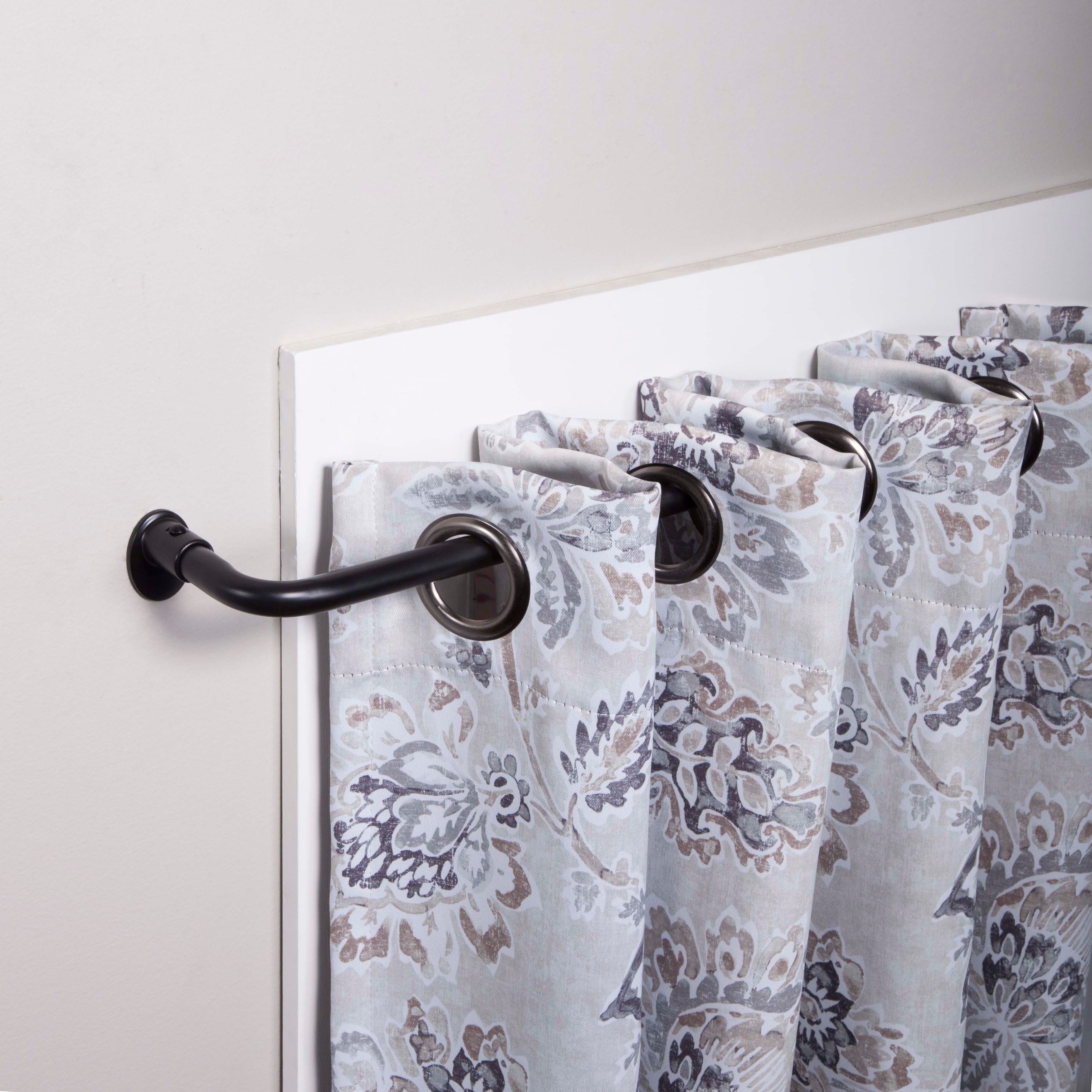 The Sun Zero 5/8" Wrap Around Room Darkening Curtain Rod is designed to wrap around your window frame to save energy, block light, and reduce noise.The black finished steel telescoping rod adjusts from 28 inches to 48 inches in length to fit a variety of window sizes and projects 3.125 inches from the wall. New and improved stronger metal brackets install quickly and easily while concealing the mounting screws and hardware. Use in your kitchen, bedroom, dining room, or living room to hang light to medium weight curtains. It is ideal for hanging curtains with grommets, back tabs, or pockets, but can also be used with tab tops or clip rings. Pair with Sun Zero curtain panels (sold separately) to maximize energy saving, light blocking, and noise reducing features. Room Darkening Rod Set Free Shipping Over $49.99* Details Sun Zero 5/8" Wrap Around Room Darkening Curtain Rod Product Description: The Sun Zero 5/8" Wrap Around Room Darkening Curtain Rod is designed to wrap around your window frame to save energy, block light, and reduce noise.The black finished steel telescoping rod adjusts from 28 inches to 48 inches in length to fit a variety of window sizes and projects 3.125 inches from the wall. New and improved stronger metal brackets install quickly and easily while concealing the mounting screws and hardware. Use in your kitchen, bedroom, dining room, or living room to hang light to medium weight curtains. It is ideal for hanging curtains with grommets, back tabs, or pockets, but can also be used with tab tops or clip rings. Pair with Sun Zero curtain panels (sold separately) to maximize energy saving, light blocking, and noise reducing features. Room Darkening Rod Set Includesone telescoping steel curtain rod, two metal mounting brackets with pins, screws, drywall anchors, and installation instructions.