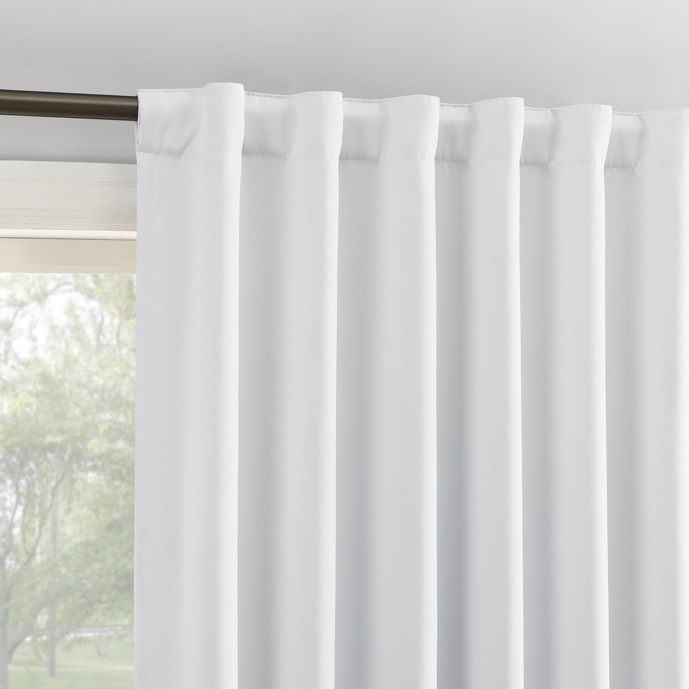 Product details Sun Zero Aria Curtain Panel Pairs provide the ultimate in light blocking technology coupled with magnetic closures to keep out even the harshest of light while bringing an elegant urban sophistication to any room of your home. Sun Zero Extreme Blackout technology is laboratory tested to block out 100% of light, reduce outside noise by up to 45%, and decrease energy lost through your windows by up to 50%. Comfort is optimized with thermal properties that help keep summer heat and winter chill out of your home. Hidden back tabs allow for easy slide-through installation on curtain rods up to 1.5" in diameter. Hang in your entertainment room to eliminate screen glare and reduce distracting outside noise, or in your bedroom for enhanced privacy and a sounder, more uninterrupted sleep. Pair includes 2 panels measuring 104" width by 63" length. Measure carefully before selecting your desired size and quantity. Machine wash cold on gentle cycle. Use non-chlorine bleach when needed. Tumble dry on low heat, using a cool iron as needed. Extreme Blackout technology with magnetic closure blocks out 100 percent of outside light Energy Efficient design reduces energy lost through your windows by up to 50 percent Thermal properties help keep summer heat and winter chill out of your home Noise reduction by up to 45 percent helps you get a sounder, more uninterrupted sleep Hidden back tabs fit curtain rods up to 1.5" in diameter Pair includes two (2) panels measuring 52" w each. Measure carefully prior to purchase. Curtain rod not included. Double rod may be needed for layering.