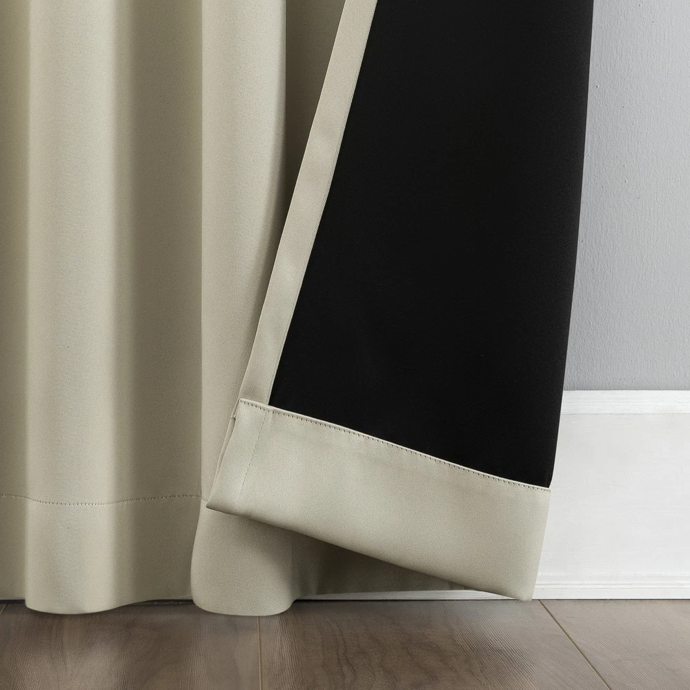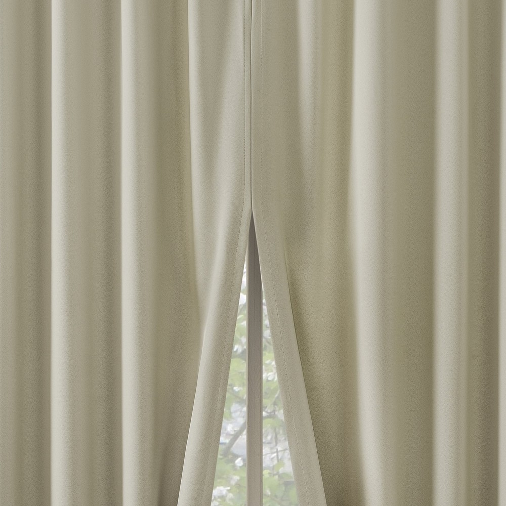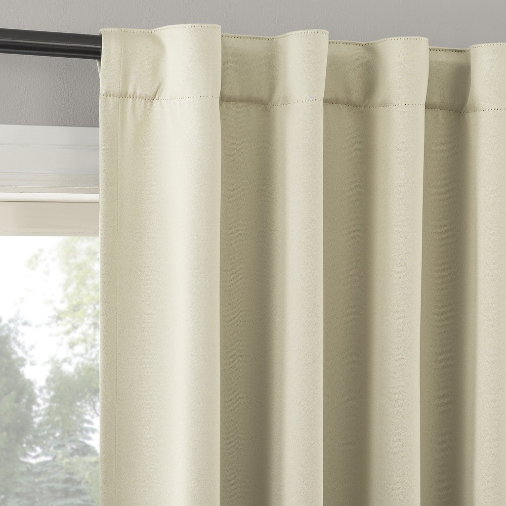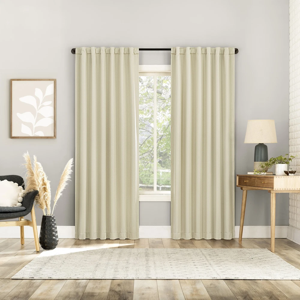 Product details Sun Zero Aria Curtain Panel Pairs provide the ultimate in light blocking technology coupled with magnetic closures to keep out even the harshest of light while bringing an elegant urban sophistication to any room of your home. Sun Zero Extreme Blackout technology is laboratory tested to block out 100% of light, reduce outside noise by up to 45%, and decrease energy lost through your windows by up to 50%. Comfort is optimized with thermal properties that help keep summer heat and winter chill out of your home. Hidden back tabs allow for easy slide-through installation on curtain rods up to 1.5" in diameter. Hang in your entertainment room to eliminate screen glare and reduce distracting outside noise, or in your bedroom for enhanced privacy and a sounder, more uninterrupted sleep. Pair includes 2 panels measuring 104" width by 96" length. Measure carefully before selecting your desired size and quantity. Machine wash cold on gentle cycle. Use non-chlorine bleach when needed. Tumble dry on low heat, using a cool iron as needed. Extreme Blackout technology with magnetic closure blocks out 100 percent of outside light Energy Efficient design reduces energy lost through your windows by up to 50 percent Thermal properties help keep summer heat and winter chill out of your home Noise reduction by up to 45 percent helps you get a sounder, more uninterrupted sleep Hidden back tabs fit curtain rods up to 1.5" in diameter Pair includes two (2) panels measuring 52" w each. Measure carefully prior to purchase. Curtain rod not included. Double rod may be needed for layering.