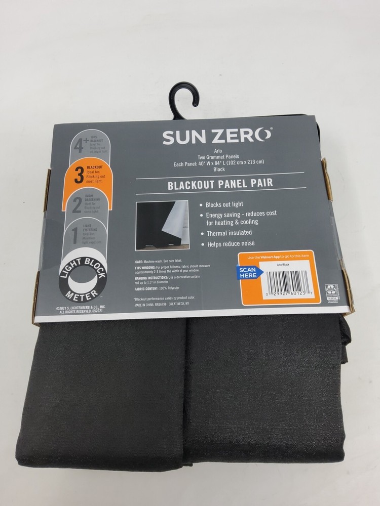 Sun Zero Arlo Blackout Two Grommet Panels 40" x 84" Black...