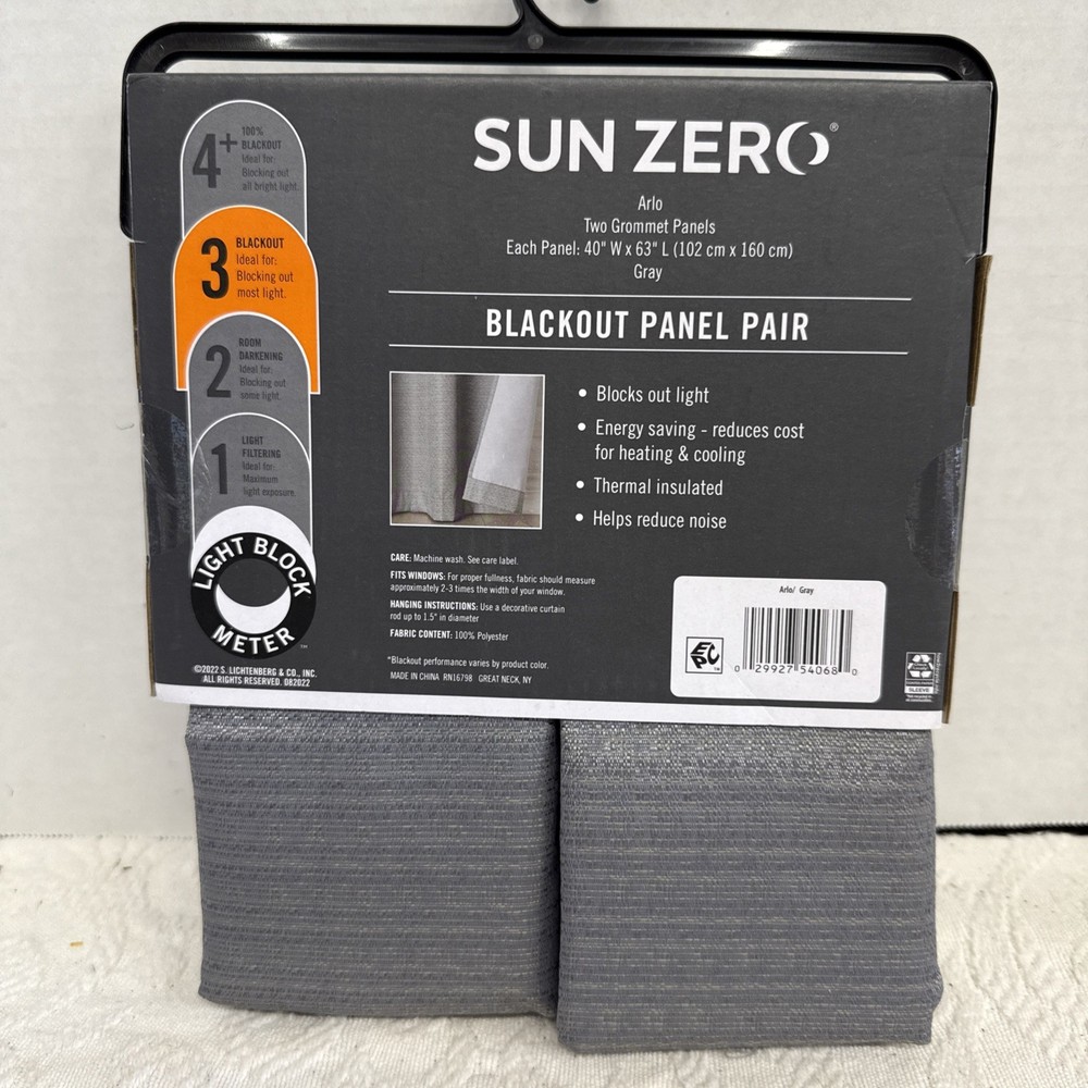 Elevate the ambiance of your living space with the Sun Zero Arlo Textured Blackout Grey Curtains. This 2-pack set features panels that measure 40 inches wide by 63 inches long, providing ample coverage for any standard-sized window. The textured material adds a touch of elegance to your decor, while the blackout feature ensures that your room is completely darkened, perfect for napping or movie nights. Crafted from high-quality polyester, these curtains are durable and easy to maintain. The gray color is neutral and versatile, making them a great addition to any room. With the Sun Zero brand, you can trust that you're getting a product that is both stylish and functional. Transform your space with these beautiful and practical curtains today. I bought these and don’t need them. They are new. Smoke free environment