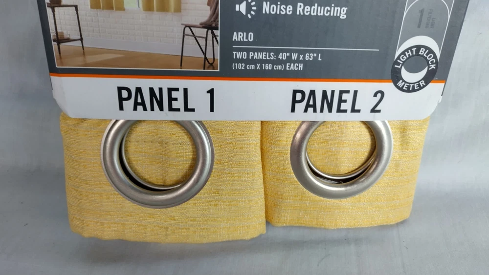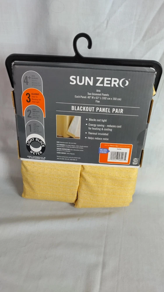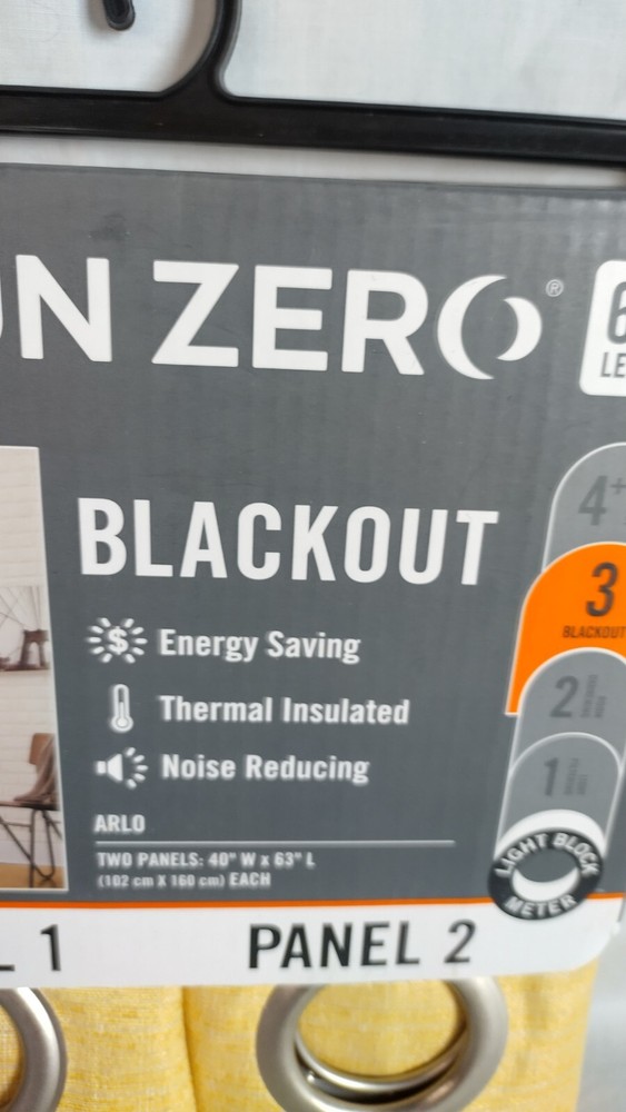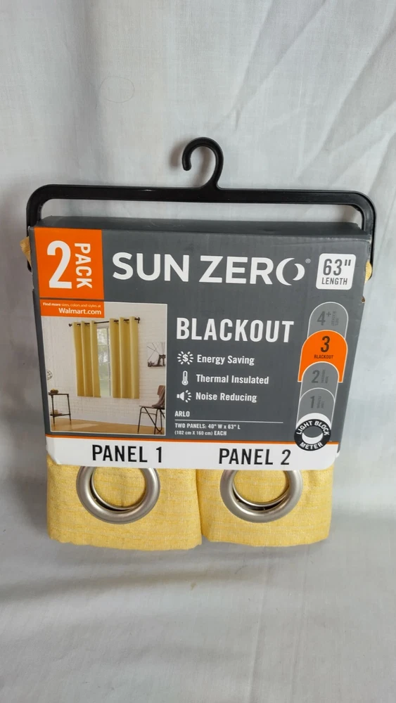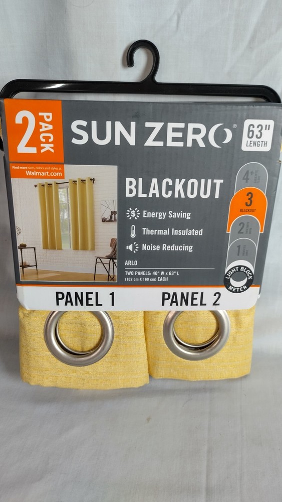 Elevate your home decor with the Sun Zero Arlo Textured Blackout Sunflower Curtains. The solid yellow color brings a warm, inviting feel to any room, while the blackout feature ensures complete privacy and light control. Made of high-quality polyester material, these curtains are durable and easy to maintain. The grommets heading makes it easy to install and the noise-reducing feature adds an extra layer of comfort. Each pack includes two panels, each measuring 40 inches wide by 63 inches long, making them perfect for any room in your home. Transform your space with these stylish and functional curtains today! Sellers notes Never been used Sunflower yellow Very thick Flat rate of $8 or shipping to anywhere in the USA We ship same day or next business day Any questions feel free to message us Please follow our store as we do add items daily As always we do combined shipping on multiple items ordered Ty for shopping at Hoarderskorner