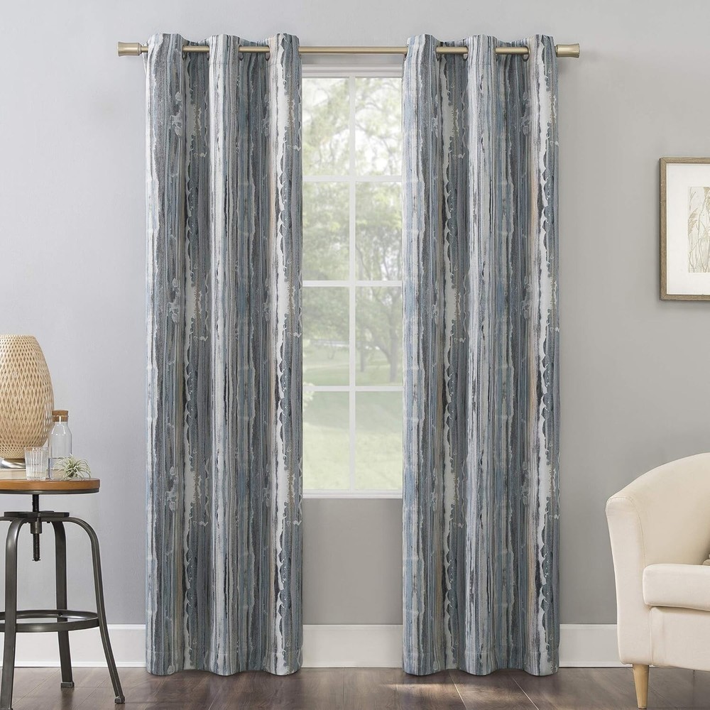 Sun Zero Artifact Abstract Painting Blackout Grommet Curtain Panel, 40" x 84", Blue Brand Sun Zero Color Blue Material Polyester Product Dimensions 84"L x 40"W Opacity Blackout About this item Abstract printed paint strokes make the perfect conversation piece Thermal properties help keep summer heat and winter chill out of your home Blackout technology blocks out most unwanted light while enhancing privacy