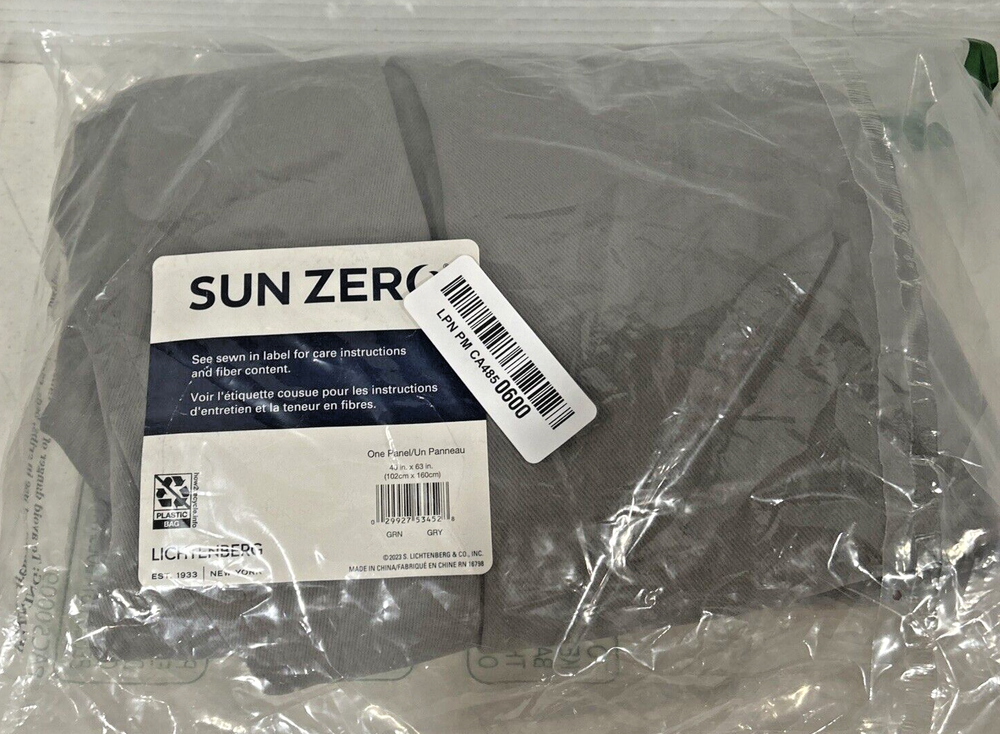 Add elegance and privacy to your home with this Sun Zero BLACKOUT Curtain. This gray colored curtain is perfect for any room in your house. The panel measures 40\"W x 63\"H and is made from high-quality materials to ensure durability and longevity. The LICHTENBERG design adds a unique touch to your decor and enhances the overall look of your home. This curtain is perfect for those who want to add a touch of sophistication to their living space. It's easy to install and maintain, making it a great addition to any home.