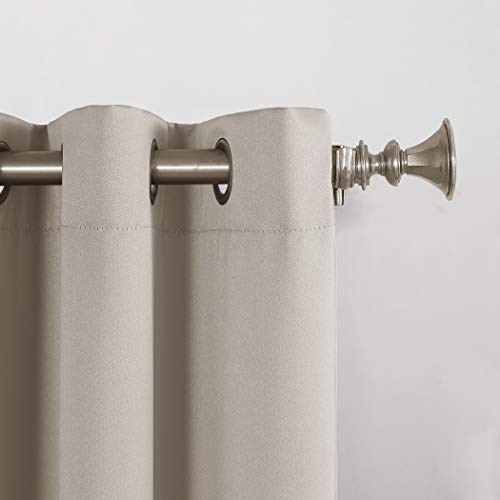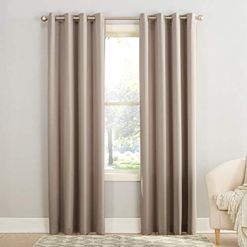 Product Page Sun Zero Barrow Energy Efficient Grommet Curtain Single Panel Kitchen Description: Sun Zero Barrow Energy Efficient Curtains bring style and energy efficiency to any home. The woven solid design with an easy to hang grommet-top offers a classic style that fits in with any room decor while reducing light and noise for better sleep; help keep your home cooler in the summer and warmer in the winter. Room darkening panels are made of materials that reduce light, and considerably darken the room. Some light will show through. These materials do not allow a view through and provide complete privacy. The darker the color the better the light reducing capabilities. Sold individually. Hang on a rod up to 1.5 inch in diameter. Polyester. Washable. Imported. Features: Room Darkening technology blocks out some unwanted light while enhancing privacy Energy efficient design reduces energy lost through your windows by up to 25% Thermal properties help keep summer heat and winter chill out of your home Noise reduction up to 25% helps you get a sounder, more uninterrupted sleep Built-in metal grommets fit curtain rods up to 1.5" in diameter Each panel sold separately Note: These are room darkening curtains and amount of light blocked depends on how dark the base color is Sold as One Panel 2" grommets Energy efficient/ light filtering / noise reducing Protects your home from outside heat & cold 100% polyester