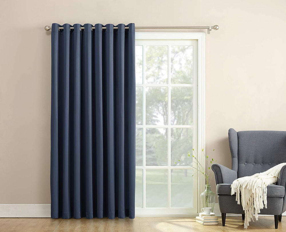 Store New Arrivals Add to Favorite View Feedback Contact Sun Zero Barrow Energy Efficient Grommet Sliding Patio Door Curtain Panel, 100" X 84", Navy Blue Description Item model number 48063 Style Curtain Weave Type Plain Number of Items 1 Pattern Solid Country of Origin China Package Weight 1.01 Kilograms Theme solid, Contemporary Unit Count 1.0 Count Room Type Living Room Product Dimensions 100"L x 84"W Brand Sun Zero Material Metal Top Style Grommet, Rod Model Name 1 Seasons Winter, Summer Lining Description Polyester Is Discontinued By Manufacturer No Specific Uses For Product Room Darkening Included Components Grommet Curtain Form Drapes Water Resistance Level Not Water Resistant Item Weight 2.22 pounds Compatible with Rod Size 1.5 Inches Occasion General Special Feature blackout Hanging Method Grommet Color Navy Blue Global Trade Identification Number 00029927480634 Recommended Uses For Product Indoor Manufacturer Lichtenberg Fabric Type 100% Polyester Product Care Instructions Machine Wash Size 84"W x 100"L (Pack of 1) Detachable pull wand ideal for sliding glass doors and large windows Room Darkening technology blocks out some unwanted light while enhancing privacy Energy efficient design reduces energy lost through your windows by up to 25% Thermal properties help keep summer heat and winter chill out of your home Noise reduction up to 25% helps you get a sounder, more uninterrupted sleep Built-in metal grommets fit curtain rods up to 1.5" in diameter Sun Zero Barrow Extra Wide Room Darkening Patio Panel is perfect for large windows and patio doors. The woven solid design with an easy to hang grommet-top offers a classic style that fits in with any room decor while reducing light and noise for better sleep; help keep your home cooler in the summer and warmer in the winter. Room Darkening panels are made of materials that reduce light, and considerably darken the room. Some light will show through and varies by base color. These materials do not allow a view through and provide privacy. The darker the color the better the light reducing capabilities. These are NOT blackout curtains. Easily open and close with the attached wand. Sold individually. Hang on a rod up to 1.5" in diameter. Polyester. Washable. Imported. ABOUT US We offer the best prices around on high quality products. Our E-store includes media such as books, movies, music and games while offering electronics, toys, sporting apparel, clothing, tools, general home, garden items and more. SHIPPING We are always working hard to ensure your package arrives as soon as possible. Please understand that some factors like weather, high postal traffic, and the performance of shipping companies are outside of our control. We offer free shipping to the lower 48 states and ship within 2 business days of payment, usually sooner. We do not accept P.O. Boxes. Please provide a physical address. RETURNS We offer a 30-Day Return Policy on items which you are not completely satisfied with. You have the option for a full-refund or an exchange of the item. No returns are available on items shipped outside of the USA. PAYMENT We accept PayPal. CONTACT US This page content is yet to come Please ad us to your favorite seller and visit again later Thank You CUSTOMER SATISFACTION We try our very best to make sure every customer is completely satisfied. If there's a problem, message us! We're happy to help.