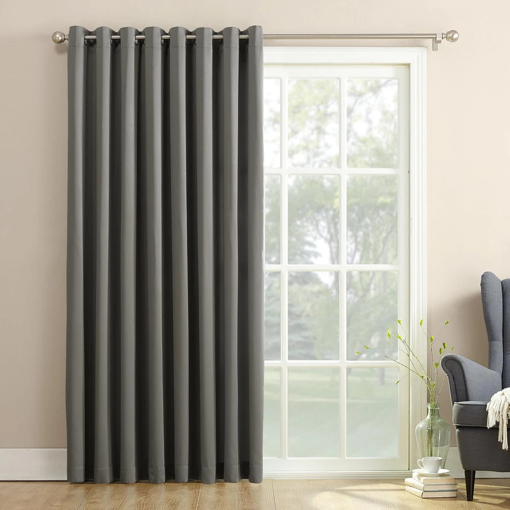 Store New Arrivals Add to Favorite View Feedback Contact Sun Zero Barrow Energy Efficient Grommet Sliding Patio Door Curtain Panel, 100" X 84", Steel Description Item model number 46162 Style Curtain Weave Type Twill Number of Items 1 Pattern Solid Country of Origin China Package Weight 1.03 Kilograms Theme solid, Contemporary Opacity Room-darkening Unit Count 1.0 Count Room Type Living Room Product Dimensions 100"L x 84"W Brand Sun Zero Material Metal Top Style Rod Model Name Extra-Wide Energy Efficient Sliding Patio Seasons Summer Lining Description Polyester Is Discontinued By Manufacturer No Specific Uses For Product Room Darkening, Privacy Included Components Grommet Curtain Form Door Panel Curtain Item Weight 2.25 pounds Compatible with Rod Size 1.5 Inches Occasion General Privacy Special Feature Extra Wide Hanging Method Grommet Color Steel Gray Global Trade Identification Number 00029927461626 Recommended Uses For Product Indoor Manufacturer Sun Zero Fabric Type Polyester Product Care Instructions Machine Wash cold, gentle cycle. Use only non-chlorine bleach when needed. Tumble dry low heat. Cool iron as needed. Size 84"W x 100"L (Pack of 1) Detachable pull wand ideal for sliding glass doors and large windows Room Darkening technology blocks out some unwanted light while enhancing privacy Energy efficient design reduces energy lost through your windows by up to 25% Thermal properties help keep summer heat and winter chill out of your home Noise reduction up to 25% helps you get a sounder, more uninterrupted sleep Built-in metal grommets fit curtain rods up to 1.5" in diameter Sun Zero Barrow Extra Wide Room Darkening Patio Panel is perfect for large windows and patio doors. The woven solid design with an easy to hang grommet-top offers a classic style that fits in with any room decor while reducing light and noise for better sleep; help keep your home cooler in the summer and warmer in the winter. Room Darkening panels are made of materials that reduce light, and considerably darken the room. Some light will show through and varies by base color. These materials do not allow a view through and provide privacy. The darker the color the better the light reducing capabilities. These are NOT blackout curtains. Easily open and close with the attached wand. Sold individually. Hang on a rod up to 1.5" in diameter. Polyester. Washable. Imported. ABOUT US We offer the best prices around on high quality products. Our E-store includes media such as books, movies, music and games while offering electronics, toys, sporting apparel, clothing, tools, general home, garden items and more. SHIPPING We are always working hard to ensure your package arrives as soon as possible. Please understand that some factors like weather, high postal traffic, and the performance of shipping companies are outside of our control. We offer free shipping to the lower 48 states and ship within 2 business days of payment, usually sooner. We do not accept P.O. Boxes. Please provide a physical address. RETURNS We offer a 30-Day Return Policy on items which you are not completely satisfied with. You have the option for a full-refund or an exchange of the item. No returns are available on items shipped outside of the USA. PAYMENT We accept PayPal. CONTACT US This page content is yet to come Please ad us to your favorite seller and visit again later Thank You CUSTOMER SATISFACTION We try our very best to make sure every customer is completely satisfied. If there's a problem, message us! We're happy to help.