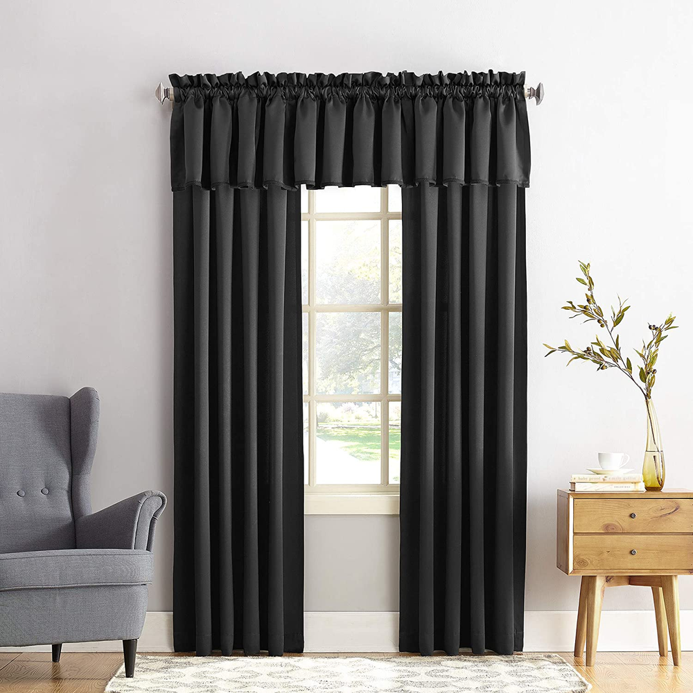 100% Polyester Imported Room Darkening technology blocks out some unwanted light while enhancing privacy Energy efficient design reduces energy lost through your windows by up to 25% Thermal properties help keep summer heat and winter chill out of your home Noise reduction up to 25% helps you get a sounder, more uninterrupted sleep Built-in rod pocket fits curtain rods up to 1.5" in diameter Each panel sold separately Sold as One Panel Protects your Home from Outside Heat & Cold Easy to Hang with a Standard or Decorative Curtain Rod 100% Polyester Easy to Clean - Machine Washable Sun Zero Barrow Energy Efficient Rod Pocket Curtains bring style and energy efficiency to any home. The woven solid design with an easy to hang rod pocket offers a classic style that fits in with any room decor while reducing light and noise for better sleep; help keep your home cooler in the summer and warmer in the winter. Room darkening panels are made of materials that reduce light, and considerably darken the room. Some light will show through. These materials do not allow a view through and provide complete privacy. The darker the color the better the light reducing capabilities. Sold individually. Hang on a rod up to 1.5 inch in diameter. Polyester. Washable. Imported.