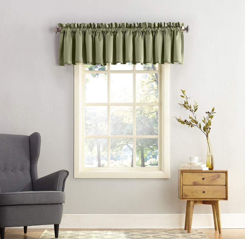 Item Name: Sun Zero Barrow Energy Efficient Rod Pocket Curtain Single Valance Description: The Sun Zero Barrow Rod Pocket Curtain Valance delicately adorns the top of any window in your home. Pair wit...