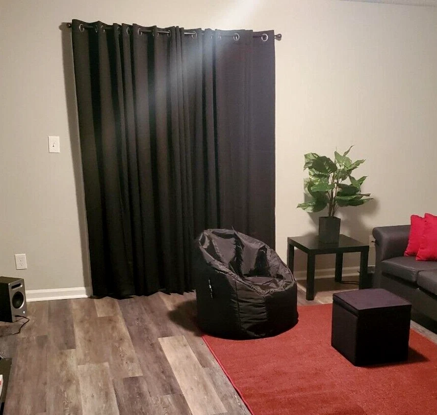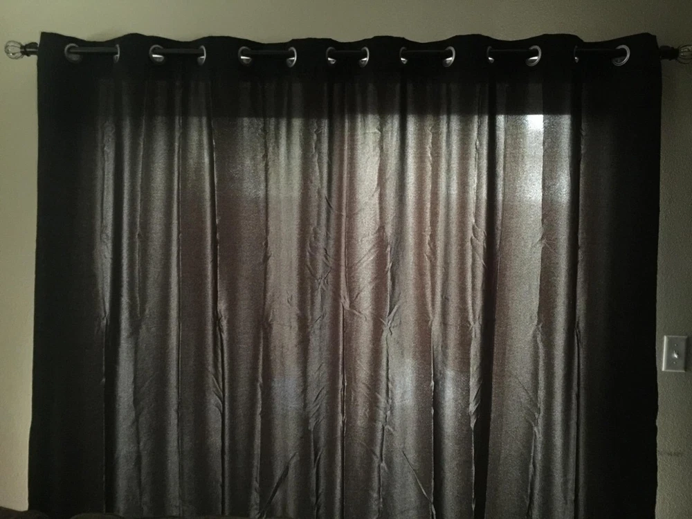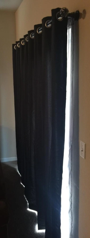 About this item 100% Polyester Imported Detachable pull wand ideal for sliding glass doors and large windows Room Darkening technology blocks out some unwanted light while enhancing privacy Energy efficient design reduces energy lost through your windows by up to 25% Thermal properties help keep summer heat and winter chill out of your home Noise reduction up to 25% helps you get a sounder, more uninterrupted sleep. Sun Zero Barrow Extra-Wide Energy Efficient Sliding Patio Door Curtain Black New Product Description Sun Zero Barrow Extra Wide Room Darkening Patio Panel is perfect for large windows and patio doors. The woven solid design with an easy to hang grommet-top offers a classic style that fits in with any room decor while reducing light and noise for better sleep; help keep your home cooler in the summer and warmer in the winter. Room Darkening panels are made of materials that reduce light, and considerably darken the room. Some light will show through and varies by base color. These materials do not allow a view through and provide privacy. The darker the color the better the light reducing capabilities. These are NOT blackout curtains. Easily open and close with the attached wand. Sold individually. Hang on a rod up to 1.5" in diameter. Polyester. Washable. Imported. Return Policy: We offer a 30 day return policy from the receiving date. Please contact us for a Return Label. Please use our return label provided by us because it will go back to our supplier. Feedback: Your satisfaction is very important to us! If you have any problem with your order, please contact us and we will do our very best to make you satisfied. As long as you are happy with your purchase, please leave a positive feedback for us. We will always leave you a positive feedback in return. If you have any problem with your purchase, please do not leave a negative feedback. Please Contact us ... and your issue will be solved quickly and positively We are a small family-owned business trying to make it, not a huge company that doesn't care ... We will ALWAYS do our best for you