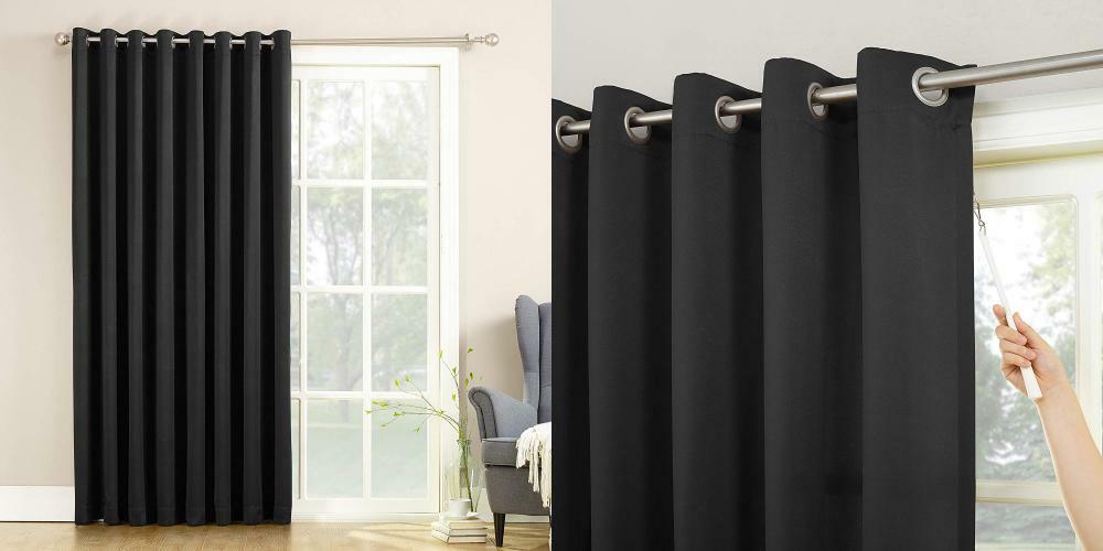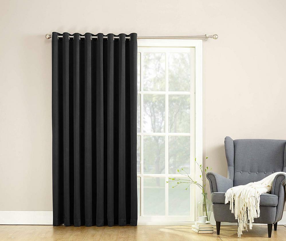 Sun Zero Barrow Extra-Wide Energy Efficient Sliding Patio Door Curtain Panel with Pull Wand, 100" x 84", Black Sun Zero Barrow Extra-Wide Energy Efficient Sliding Patio Door Curtain Panel with Pull Wand, 100" x 84", Black PRODUCT DESCRIPTION: Sun Zero Barrow Extra Wide Room Darkening Patio Panel is perfect for large windows and patio doors. The woven solid design with an easy to hang grommet-top offers a classic style that fits in with any room decor while reducing light and noise for better sleep; help keep your home cooler in the summer and warmer in the winter. Room Darkening panels are made of materials that reduce light, and considerably darken the room. Some light will show through and varies by base color. These materials do not allow a view through and provide privacy. The darker the color the better the light reducing capabilities. These are NOT blackout curtains. Easily open and close with the attached wand. Sold individually. Hang on a rod up to 1.5" in diameter. Polyester. Washable. Imported. DETAILS: Product Dimensions: 84 x 100 x 1 inchesItem Weight: 2.2 poundsShipping Weight: 2.45 poundsManufacturer: Sun ZeroItem model number: 44017 ADDITIONAL PRODUCT INFO: 100% PolyesterImportedDetachable pull wand ideal for sliding glass doors and large windowsRoom Darkening technology blocks out some unwanted light while enhancing privacyEnergy efficient design reduces energy lost through your windows by up to 25%Thermal properties help keep summer heat and winter chill out of your homeNoise reduction up to 25% helps you get a sounder, more uninterrupted sleepBuilt-in metal grommets fit curtain rods up to 1.5" in diameterSold as One PanelMetal grommetsPatio panel with pull wandFilters light100% polyesterMachine washable for easy care HANDLING TIME: We ship orders within 1 business day of receiving payment, sometimes faster SHIPPING We ship out via expedited shipping that usually arrives within 3 business days. IF YOU NEED YOUR ITEM FASTER UPGRADED 2 DAY SHIPPING IS ONLY $2.99 FOR MANY ITEMS. We Do Not Ship to PO/APO Boxes, HI or Alaska. For international shipments- We are part of the eBay Global Shipping Program. For large items that require Freight shipping a valid phone number is required to call and schedule your delivery. Please make sure to provide the correct shipping address during checkout as the address cannot be changed after checkout. We are not responsible for any incorrect or undeliverable addresses. If an item can not be delivered by our shipping service due to address issues your purchase will need to be cancelled and resubmitted with alternate information. RETURN & REFUND POLICY We offer a 30 day refund policy. WE OFFER FREE RETURNS AND WE PROVIDE THE SHIPPING LABLES. Just send us a note through the ebay returns portal and we will send you the label. All items must be returned undamaged in the original package. A restocking fee may apply.