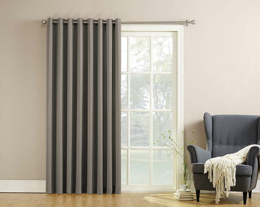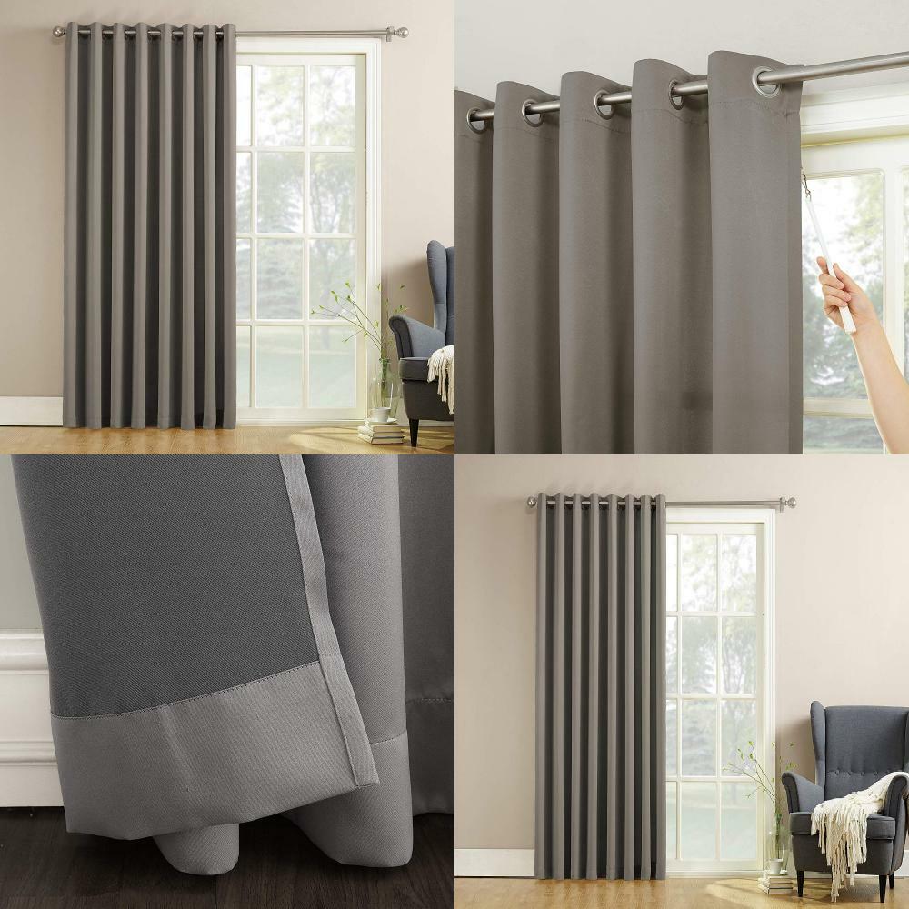 Sun Zero Barrow Extra-Wide Energy Efficient Sliding Patio Door Curtain Panel with Pull Wand, 100" x 84", Gray Sun Zero Barrow Extra-Wide Energy Efficient Sliding Patio Door Curtain Panel with Pull Wand, 100" x 84", Gray PRODUCT DESCRIPTION: Sun Zero Barrow Extra Wide Room Darkening Patio Panel is perfect for large windows and patio doors. The woven solid design with an easy to hang grommet-top offers a classic style that fits in with any room decor while reducing light and noise for better sleep; help keep your home cooler in the summer and warmer in the winter. Room Darkening panels are made of materials that reduce light, and considerably darken the room. Some light will show through and varies by base color. These materials do not allow a view through and provide privacy. The darker the color the better the light reducing capabilities. These are NOT blackout curtains. Easily open and close with the attached wand. Sold individually. Hang on a rod up to 1.5" in diameter. Polyester. Washable. Imported. DETAILS: Product Dimensions: 84 x 100 x 0.1 inchesItem Weight: 2.25 poundsShipping Weight: 2.25 poundsManufacturer: LichtenbergItem model number: 47371 ADDITIONAL PRODUCT INFO: 100% PolyesterImportedDetachable pull wand ideal for sliding glass doors and large windowsRoom Darkening technology blocks out some unwanted light while enhancing privacyEnergy efficient design reduces energy lost through your windows by up to 25%Thermal properties help keep summer heat and winter chill out of your homeNoise reduction up to 25% helps you get a sounder, more uninterrupted sleepBuilt-in metal grommets fit curtain rods up to 1.5" in diameter HANDLING TIME: We ship orders within 1 business day of receiving payment, sometimes faster SHIPPING We ship out via expedited shipping that usually arrives within 3 business days. IF YOU NEED YOUR ITEM FASTER UPGRADED 2 DAY SHIPPING IS ONLY $2.99 FOR MANY ITEMS. We Do Not Ship to PO/APO Boxes, HI or Alaska. For international shipments- We are part of the eBay Global Shipping Program. For large items that require Freight shipping a valid phone number is required to call and schedule your delivery. Please make sure to provide the correct shipping address during checkout as the address cannot be changed after checkout. We are not responsible for any incorrect or undeliverable addresses. If an item can not be delivered by our shipping service due to address issues your purchase will need to be cancelled and resubmitted with alternate information. RETURN & REFUND POLICY We offer a 30 day refund policy. WE OFFER FREE RETURNS AND WE PROVIDE THE SHIPPING LABLES. Just send us a note through the ebay returns portal and we will send you the label. All items must be returned undamaged in the original package. A restocking fee may apply.