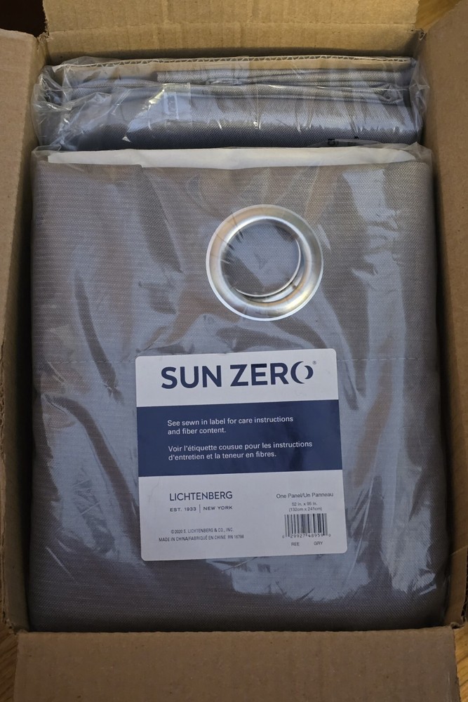 6 total curtains. 1 was opened just ti see the size, never used. 5 are sealed. Elevate your home decor with the Sun Zero Beacon Woven Blackout Grommet Curtain Panels. These elegant curtains come in a rich green hue that complements any room's color scheme. The 52"x95" size is perfect for most windows, and the rod pocket heading makes them easy to install. Crafted from 100% polyester, these curtain panels are durable and easy to maintain. They feature a stylish curtain panels design that adds a touch of sophistication to your home. Whether you're looking to block out external noise or simply want to add some flair to your windows, the Sun Zero Beacon Woven Blackout Grommet Curtain Panels are an excellent choice.