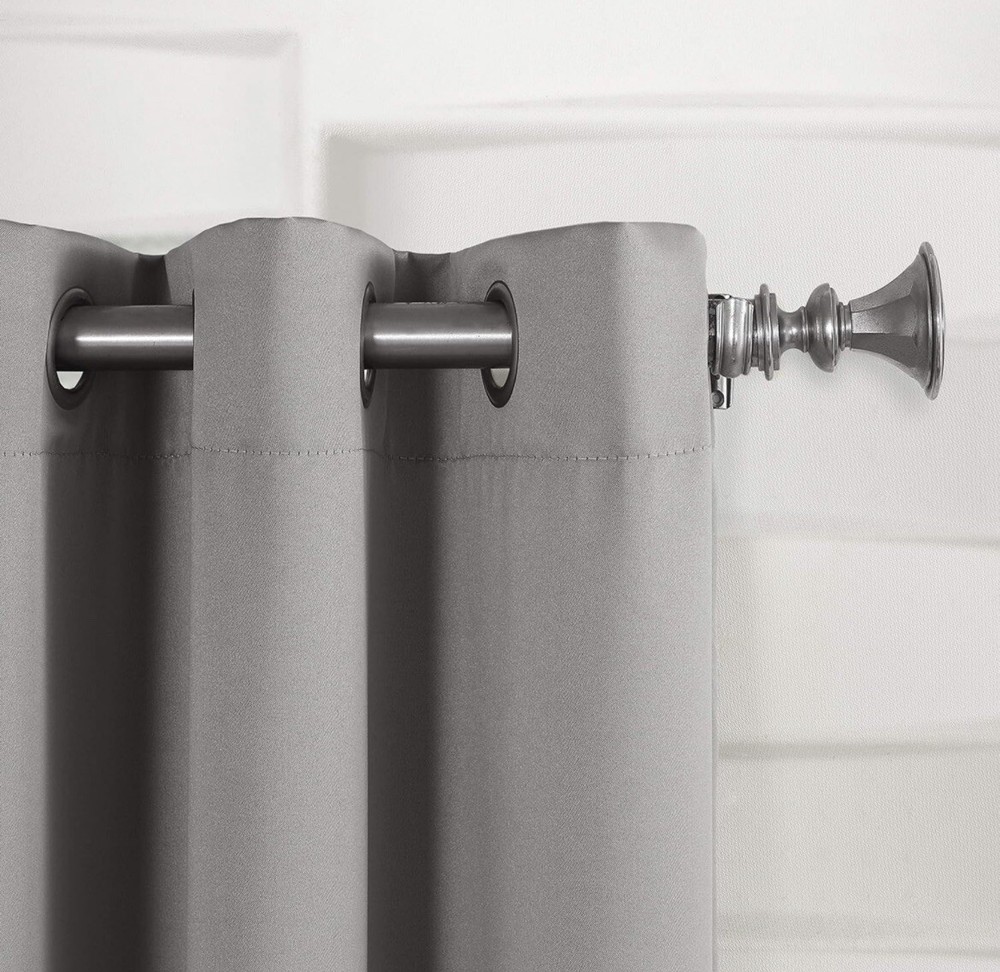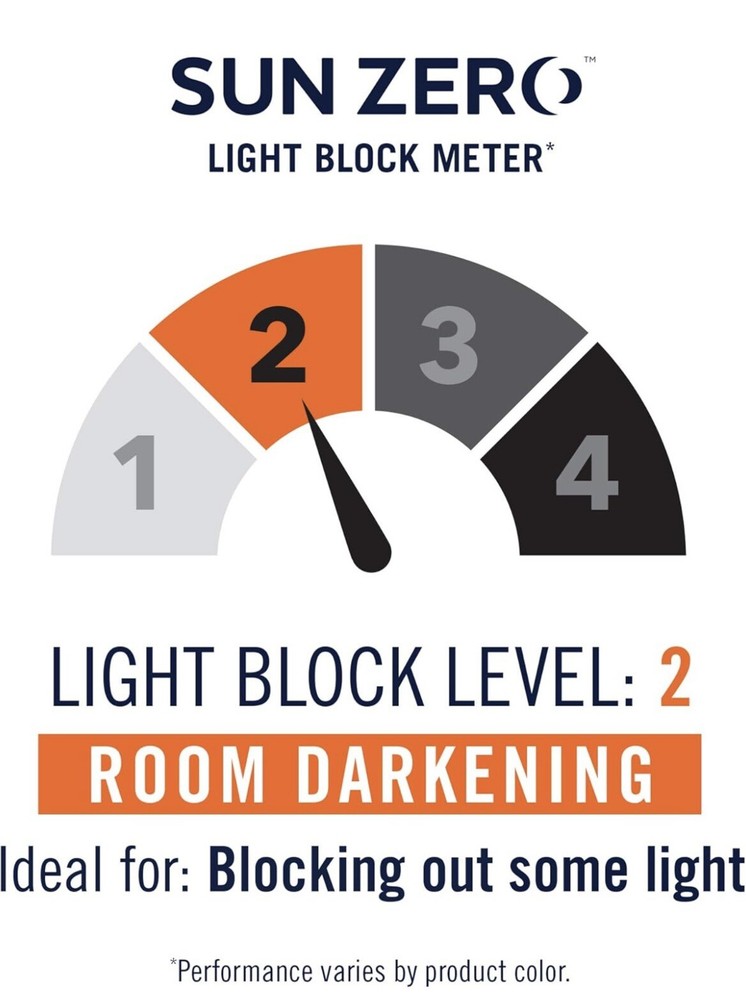 Gray sun zero window curtain panel Color - Grey EUC Material - Polyester Product Dimensions - 84"L x 40"W (one panel only) Opacity - Room Darkening Room Darkening technology blocks out some unwanted light while enhancing privacy Energy efficient design reduces energy lost through your windows by up to 25% Thermal properties help keep summer heat and winter chill out of your home Built-in metal grommets fit curtain rods up to 1.5" in diameter *one panel only