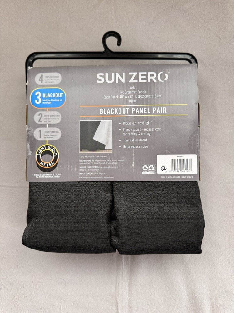 • Brand new - never used • 2 Pack of black blackout curtains • Length is 84 inches, Width is 40 inches • Blocks light, energy saving, thermal insulated, and reduces noise • Curtain rod does not come w...
