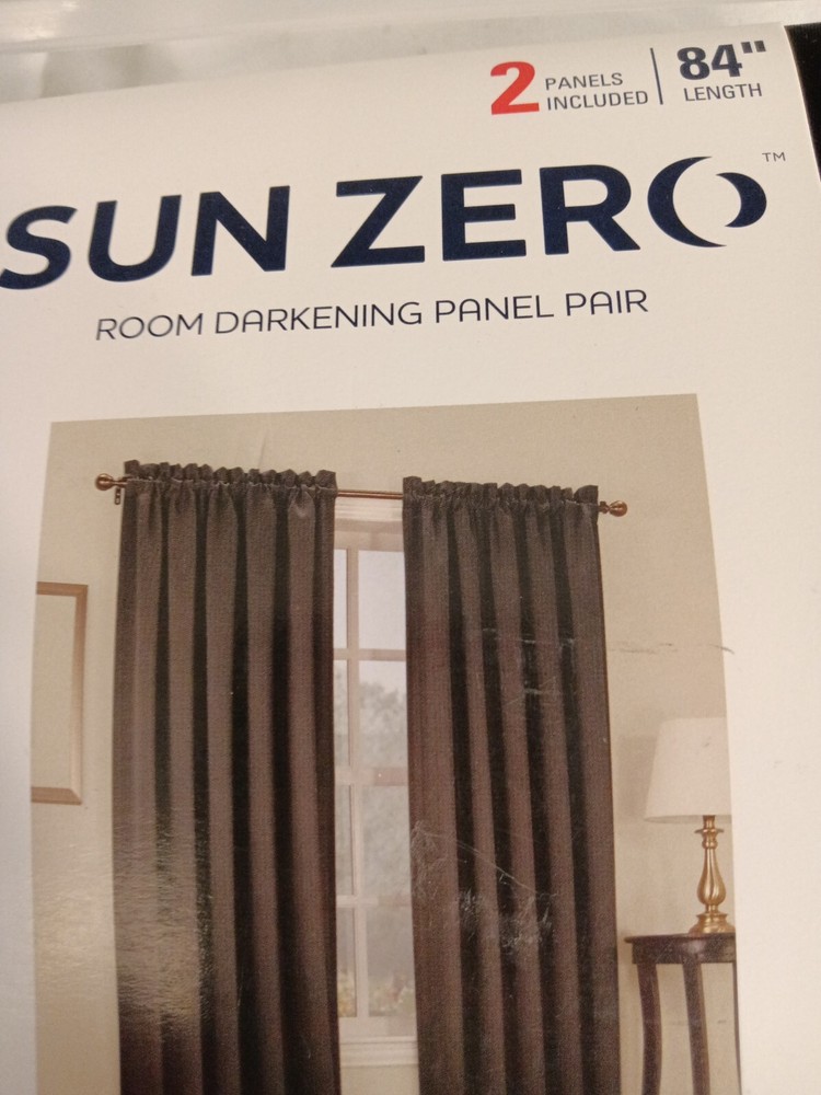 Sun Zero Black Emory Room-Darkening RodPocket Curtain Panel Pr. 54"x84"A62. Always free shipping and handling. Thanks for looking.