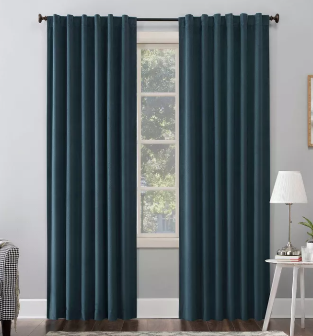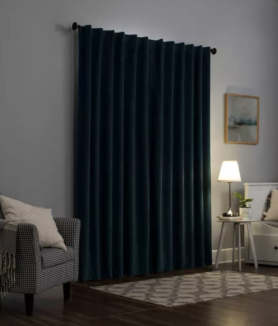 Highlights Decadent velvet fabric adds luxe appeal to any room Extreme Thermal Blackout technology blocks out 100% of outside light Thermal properties help keep summer heat and winter chill out of your home Noise reduction by up to 40% helps you get a sounder, more uninterrupted sleep Hidden back tabs fit curtain rods up to 1.5" in diameter Panels sold individually Description Featuring a decadent velvet fabric, Sun Zero Amherst Curtain Panels add luxe appeal to any room of your home. Equipped with hidden back tabs for easy hanging on standard curtain rods up to 1.5" in diameter. Sun Zero Extreme Blackout Thermal Lining is laboratory tested to block out 100% of light, reduce outside noise by up to 40%, and decrease energy lost through your windows by up to 40%. Comfort is optimized with thermal properties that help keep summer heat and winter chill out of your home. Built-in hidden back tabs on reverse side allow for easy slide-through installation on curtain rods up to 1.5" in diameter. Hang in your entertainment room to eliminate screen glare and reduce distracting outside noise, or in your bedroom for enhanced privacy and a sounder, more uninterrupted sleep. Sold as individual panels. Measure carefully before selecting your desired size and quantity. Rod not included. Machine wash cold on gentle cycle. Use non-chlorine bleach when needed. Tumble dry on low heat, using a cool iron as needed. We will be happy to answer any questions or provide more information, just click "ask a question" at the bottom of the page. Thanks! Sun Zero Blackout Amherst Velvet Back Tab Curtain Panel 50" W x 84" L Teal Sun Zero Blackout Amherst Velvet Back Tab Curtain Panel 50" W x 84" L Teal Click images to enlarge Description Highlights Decadent velvet fabric adds luxe appeal to any room Extreme Thermal Blackout technology blocks out 100% of outside light Thermal properties help keep summer heat and winter chill out of your home Noise reduction by up to 40% helps you get a sounder, more uninterrupted sleep Hidden back tabs fit curtain rods up to 1.5" in diameter Panels sold individually Description Featuring a decadent velvet fabric, Sun Zero Amherst Curtain Panels add luxe appeal to any room of your home. Equipped with hidden back tabs for easy hanging on standard curtain rods up to 1.5" in diameter. Sun Zero Extreme Blackout Thermal Lining is laboratory tested to block out 100% of light, reduce outside noise by up to 40%, and decrease energy lost through your windows by up to 40%. Comfort is optimized with thermal properties that help keep summer heat and winter chill out of your home. Built-in hidden back tabs on reverse side allow for easy slide-through installation on curtain rods up to 1.5" in diameter. Hang in your entertainment room to eliminate screen glare and reduce distracting outside noise, or in your bedroom for enhanced privacy and a sounder, more uninterrupted sleep. Sold as individual panels. Measure carefully before selecting your desired size and quantity. Rod not included. Machine wash cold on gentle cycle. Use non-chlorine bleach when needed. Tumble dry on low heat, using a cool iron as needed. We will be happy to answer any questions or provide more information, just click "ask a question" at the bottom of the page. Thanks! Pictures sell! Auctiva offers Free Image Hosting and Editing. 300+ Listing Templates! Auctiva gets you noticed! The complete eBay Selling Solution. Track Page Views With Auctiva's Counter