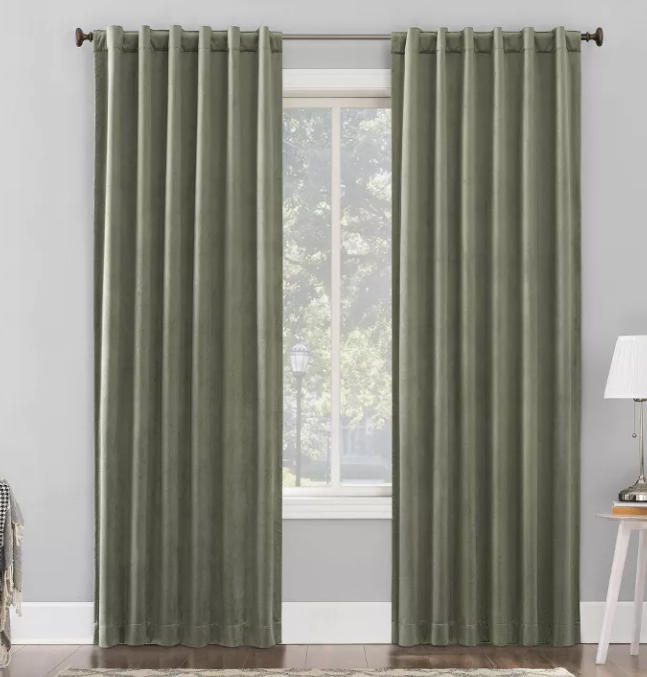 Sun Zero Blackout Amherst Velvet Noise Reducing Thermal Back Tab Curtain Panel Decadent velvet fabric adds luxe appeal to any room Extreme Thermal Blackout technology blocks out 100% of outside light Thermal properties help keep summer heat and winter chill out of your home Noise reduction by up to 40% helps you get a sounder, more uninterrupted sleep Hidden back tabs fit curtain rods up to 1.5" in diameter Panels sold individually. Measure carefully prior to purchase. (Image features 2 panels) Featuring a decadent velvet fabric, Sun Zero Amherst Curtain Panels add luxe appeal to any room of your home. Equipped with hidden back tabs for easy hanging on standard curtain rods up to 1.5" in diameter. Sun Zero Extreme Blackout™ Thermal Lining is laboratory tested to block out 100% of light, reduce outside noise by up to 40%, and decrease energy lost through your windows by up to 40%. Comfort is optimized with thermal properties that help keep summer heat and winter chill out of your home. Built-in hidden back tabs on reverse side allow for easy slide-through installation on curtain rods up to 1.5" in diameter. Hang in your entertainment room to eliminate screen glare and reduce distracting outside noise, or in your bedroom for enhanced privacy and a sounder, more uninterrupted sleep. Sold as individual panels. Measure carefully before selecting your desired size and quantity. Rod not included. Machine wash cold on gentle cycle. Use non-chlorine bleach when needed. Tumble dry on low heat, using a cool iron as needed. We will be happy to answer any questions or provide more information, just click "ask a question" at the bottom of the page. Thanks! Sun Zero Blackout Amherst Velvet Thermal Back Tab Curtain Panel 50" W x 84" L Sun Zero Blackout Amherst Velvet Thermal Back Tab Curtain Panel 50" W x 84" L Click images to enlarge Description Sun Zero Blackout Amherst Velvet Noise Reducing Thermal Back Tab Curtain Panel Decadent velvet fabric adds luxe appeal to any room Extreme Thermal Blackout technology blocks out 100% of outside light Thermal properties help keep summer heat and winter chill out of your home Noise reduction by up to 40% helps you get a sounder, more uninterrupted sleep Hidden back tabs fit curtain rods up to 1.5" in diameter Panels sold individually. Measure carefully prior to purchase. (Image features 2 panels) Featuring a decadent velvet fabric, Sun Zero Amherst Curtain Panels add luxe appeal to any room of your home. Equipped with hidden back tabs for easy hanging on standard curtain rods up to 1.5" in diameter. Sun Zero Extreme Blackout™ Thermal Lining is laboratory tested to block out 100% of light, reduce outside noise by up to 40%, and decrease energy lost through your windows by up to 40%. Comfort is optimized with thermal properties that help keep summer heat and winter chill out of your home. Built-in hidden back tabs on reverse side allow for easy slide-through installation on curtain rods up to 1.5" in diameter. Hang in your entertainment room to eliminate screen glare and reduce distracting outside noise, or in your bedroom for enhanced privacy and a sounder, more uninterrupted sleep. Sold as individual panels. Measure carefully before selecting your desired size and quantity. Rod not included. Machine wash cold on gentle cycle. Use non-chlorine bleach when needed. Tumble dry on low heat, using a cool iron as needed. We will be happy to answer any questions or provide more information, just click "ask a question" at the bottom of the page. Thanks! Pictures sell! Auctiva offers Free Image Hosting and Editing. 300+ Listing Templates! Auctiva gets you noticed! The complete eBay Selling Solution. Track Page Views With Auctiva's Counter