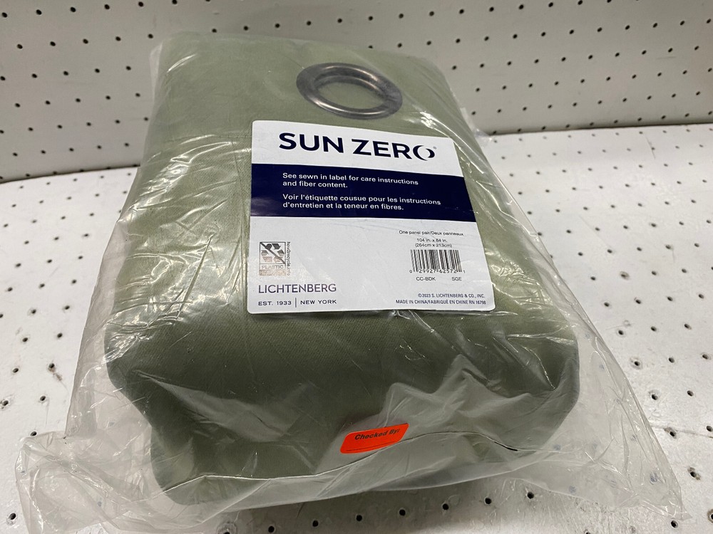 Sun Zero Blackout Curtain 104 x 84 inches Sage Green 2 Panels 1 Pair..... Fast Shipping! - We ship within 1 business day of receiving payment. Packages are shipped via USPS, UPS and FedEx, depending on the destination and weight of the package. Free thirty day returns are included on most items that we sell...Check item description above to confirm. Should you have any issues or questions regarding any item, please contact us first before leaving NEUTRAL or NEGATIVE FEEDBACK. Thank you for your consideration.