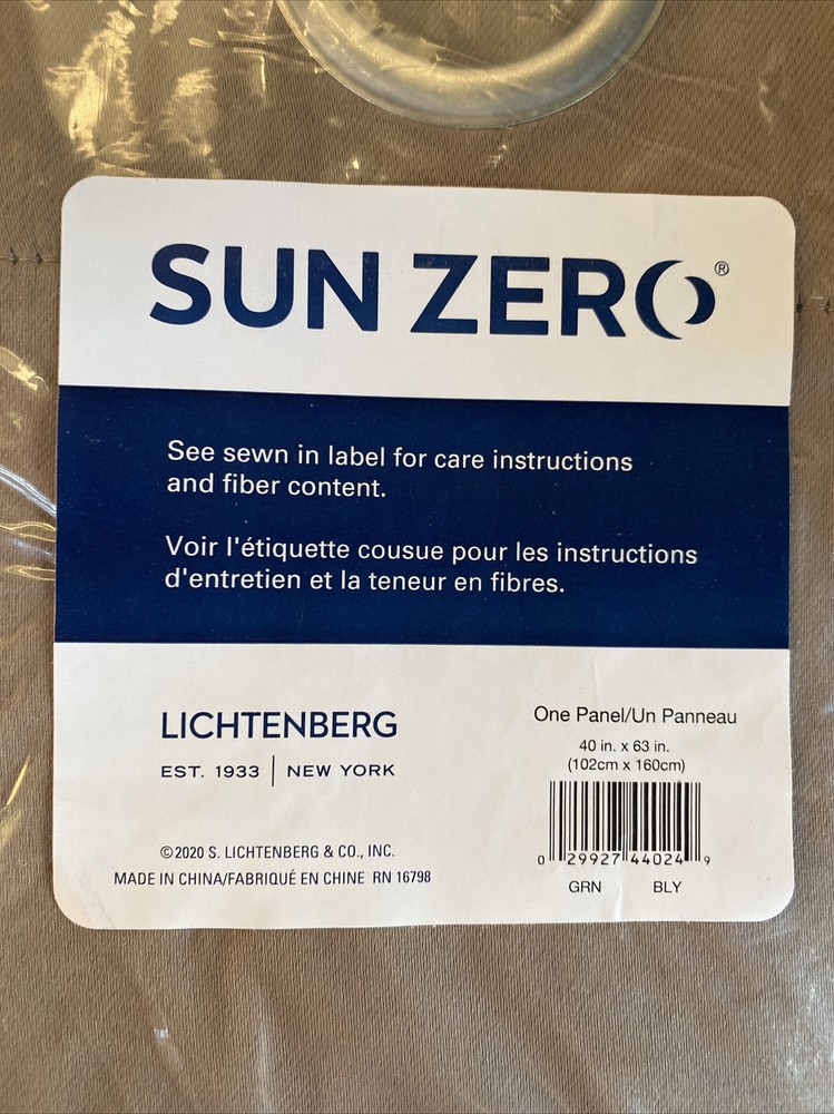 Sun Zero Blackout Curtain Energy Efficient Panel, 40" x 63" Solid Tan -Free Ship. Condition is "New". Shipped with USPS Priority Mail.