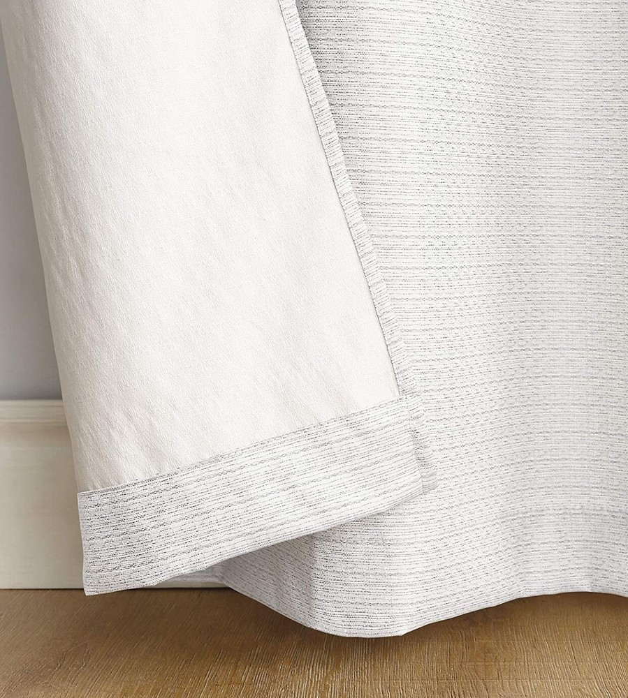 Sun Zero Blackout Curtain Panel White Grommet 40 Inch X 95 Inch. Unique woven textured design with Thermal Insulated Room Darkening technology Energy Efficient design reduces energy lost through your windows by up to 40% Thermal insulation helps you keep the summer heat and winter chill out of your home Noise reduction helps you get a sounder, more uninterrupted sleep Silver metal grommet top fits a standard curtain rod for easy hanging