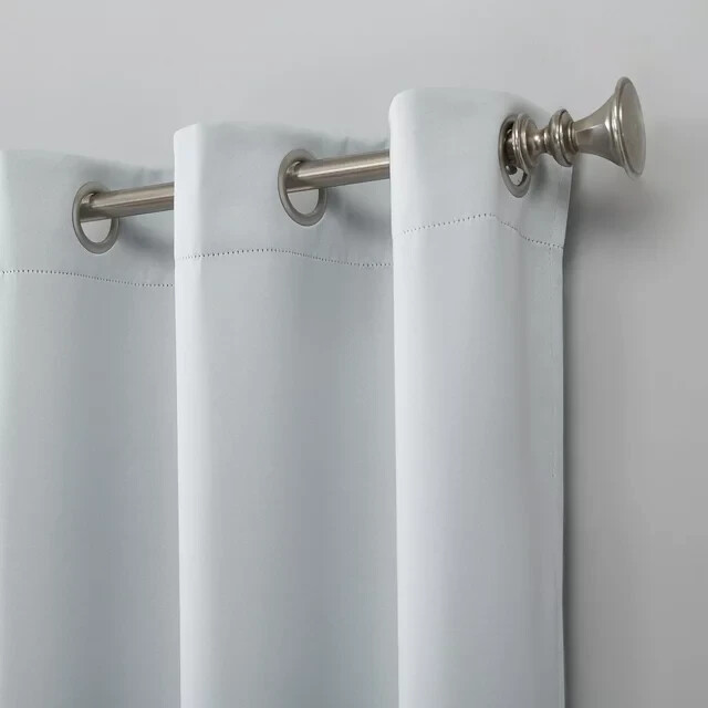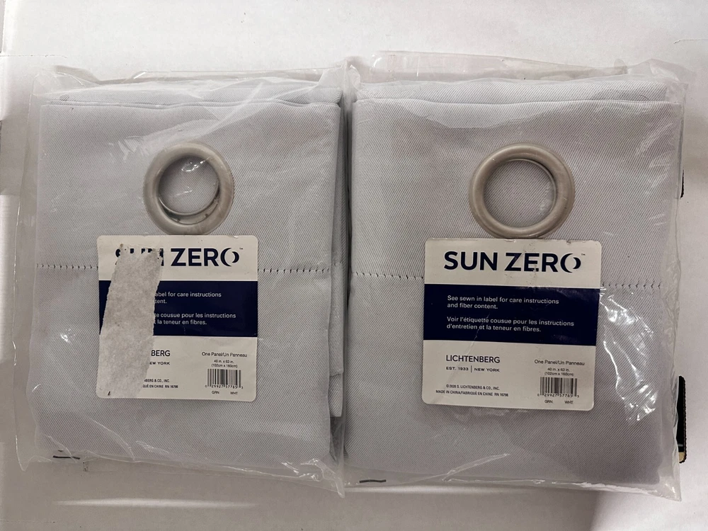 WE DO NOT SHIP TO P.O. BOXES. PLEASE PROVIDE A PHYSICAL MAILING ADDRESS. Item will be shipped free by USPS Priority Mail/UPS within 48 Lower States (NO SHIPPING for Alaska, Hawaii or Puerto Rico) SET OF 2 - EACH PACKAGE CONTAINS 1 PANEL Sun Zero Nolan Curtain Panel in dove whites infuse a modern sophistication into any living space. Equipped with built-in metal grommets for easy hanging on standard curtain rods up to 1.5" in diameter. Sun Zero Blackout technology blocks out most outside light, offers outside noise reduction by up to 25%, and decreases energy lost through your windows by up to 25%. Comfort is optimized with thermal properties that help keep summer heat and winter chill out of your home. Hang in your living room for enhanced privacy, or in your bedroom for a sounder, more uninterrupted sleep. Measuring 40" width by 63" length for each panel. Machine wash cold on gentle cycle. Use non-chlorine bleach when needed. Tumble dry on low heat, using a cool iron as needed. Blackout technology blocks out most unwanted light while enhancing privacy Energy efficient design reduces energy lost through your windows by up to 25 percent Thermal properties help keep summer heat and winter chill out of your home Noise reduction up to 25 percent helps you get a sounder, more uninterrupted sleep Built-in metal grommets fit curtain rods up to 1.5" in diameter Curtain rod not included. Double rod may be needed for layering.