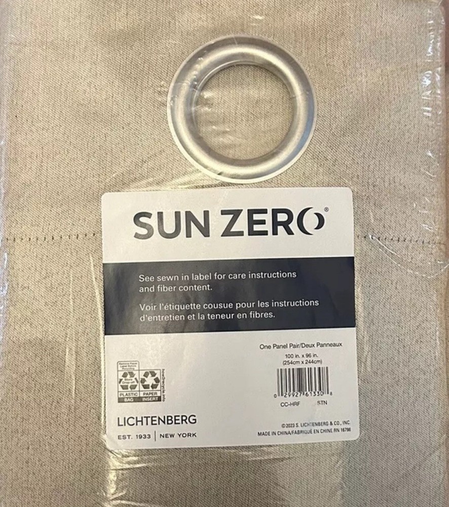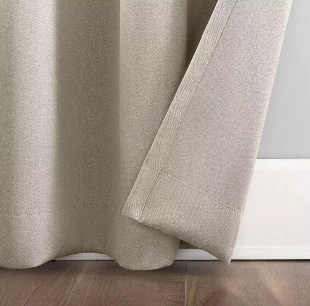 Sun Zero presents a pair of Hartford grommet blackout curtain panels in beige, each measuring 96 inches in length and 50 inches in width. These light filtering panels feature room darkening capabilities, making them perfect for creating a cozy atmosphere in any room of your home.