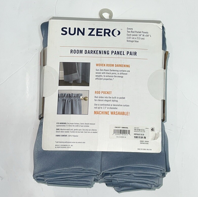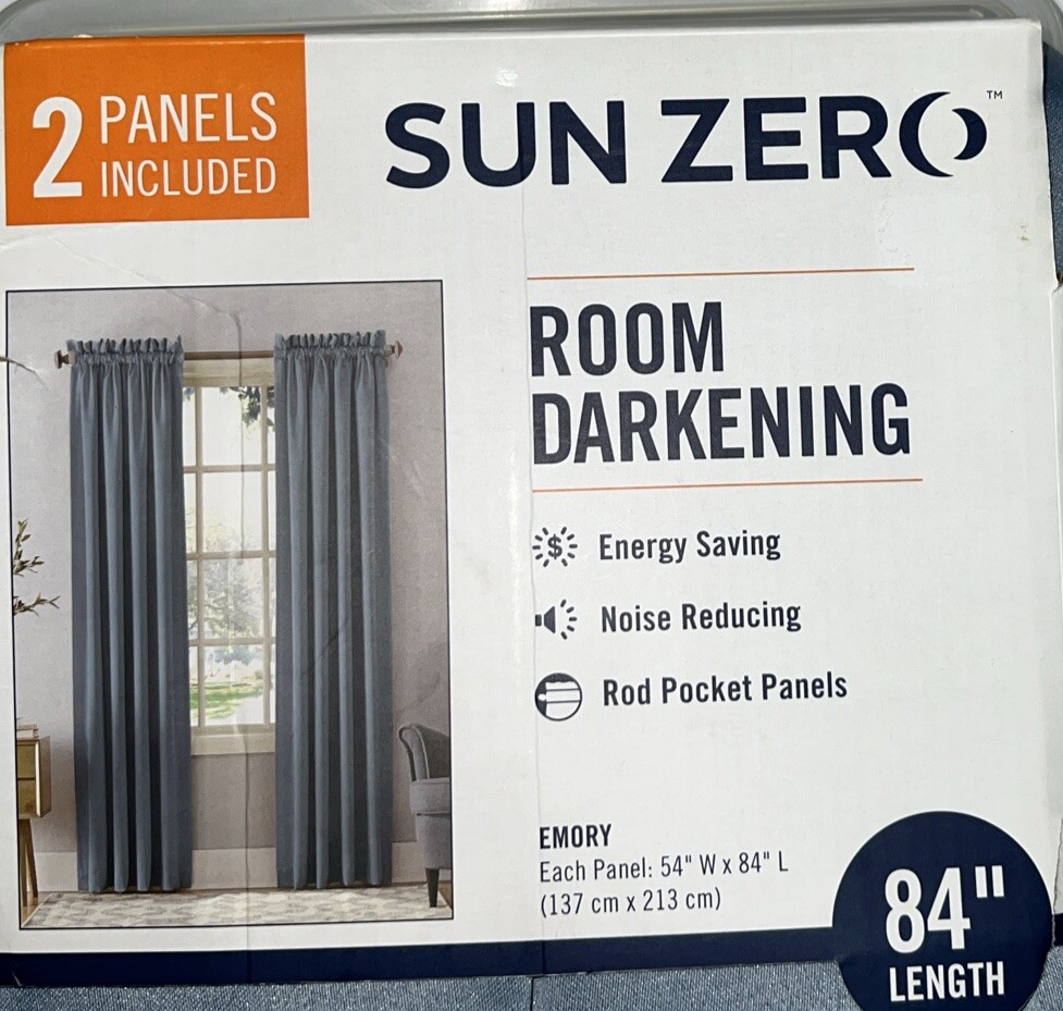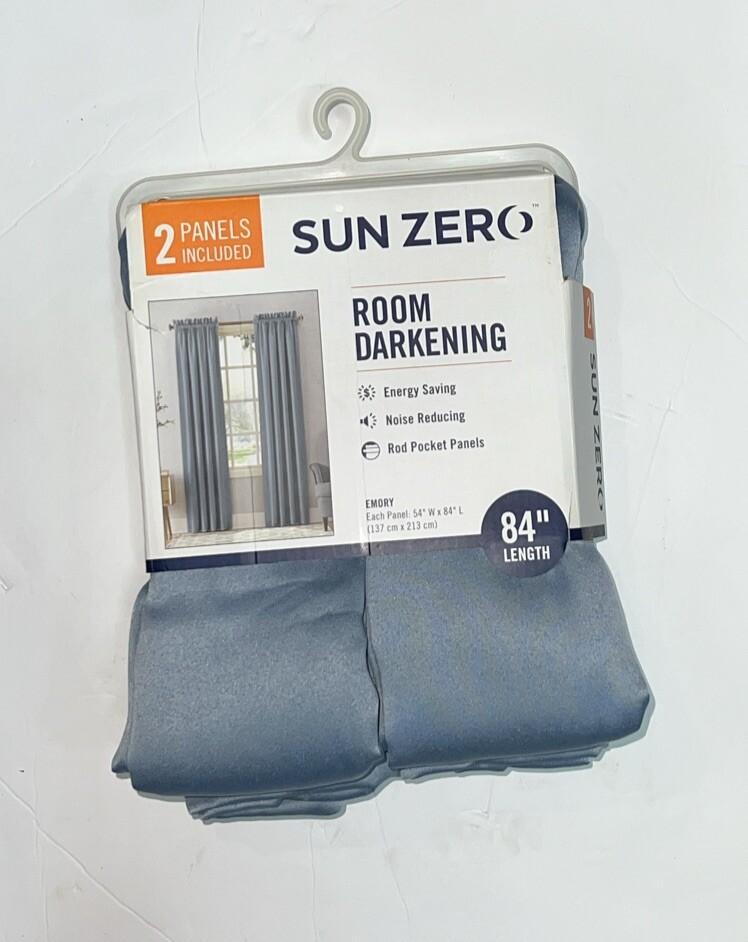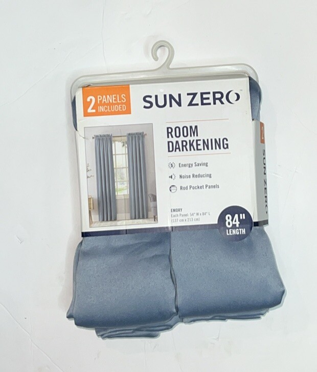 Sun Zero Blue Emory Room-Darkening Rod-Pocket Curtain Panel Pair, 54"x84". Condition is New. Shipped with USPS Priority Mail.