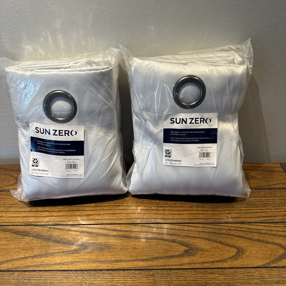 Enhance your home decor with the Sun Zero Broderick Theater Grade Blackout 2 Pannels Curtains. These modern style curtains are perfect for any room and come in a solid pattern with blackout transparency. The grommet curtain heading ensures easy installation and the 52in * 120in size is perfect for most window sizes. The curtains are noise reducing and provide complete blackout, making them ideal for indoor use. The Sun Zero brand is known for its quality and these panel curtains are no exception. They are made in China and are available in a sleek white color, as shown in the photos. The curtains are designed for easy installation and come with all the necessary accessories. Upgrade your home decor with these stylish and functional curtains today!