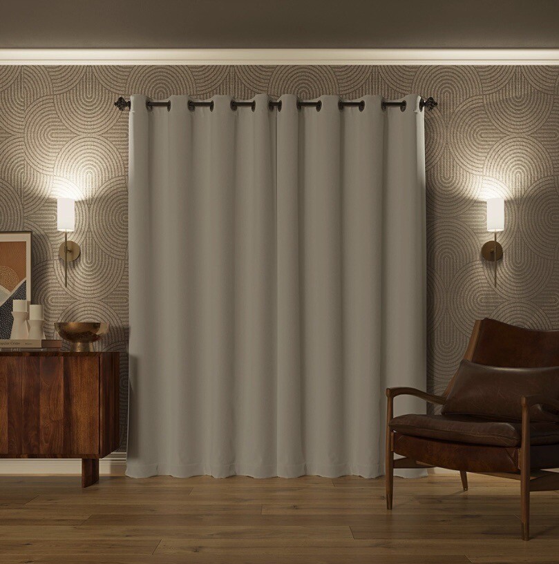New, Sun Zero Broderick Theater Grade Blackout Panels. These wall mounted panels come in a solid cream color with a blackout and thermal lining to reduce noise and keep your room comfortable from the summer heat or winter chill.